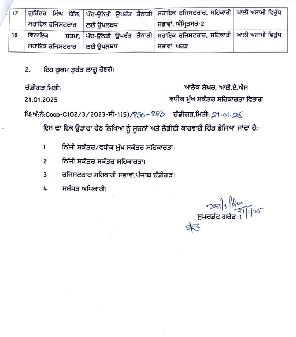 ਪੰਜਾਬ ਸਰਕਾਰ ਵੱਲੋਂ ਸਹਿਕਾਰਤਾ ਵਿਭਾਗ ’ਚ ਅਧਿਕਾਰੀਆਂ ਤੇ ਕਰਮਚਾਰੀਆਂ ਦੀਆਂ ਬਦਲੀਆਂ ਪੰਜਾਬ ਜਨਵਰੀ 21, 2025ਜਨਵਰੀ 21, 2025Leave a Comment on ਪੰਜਾਬ ਸਰਕਾਰ ਵੱਲੋਂ ਸਹਿਕਾਰਤਾ ਵਿਭਾਗ ’ਚ ਅਧਿਕਾਰੀਆਂ ਤੇ ਕਰਮਚਾਰੀਆਂ ਦੀਆਂ ਬਦਲੀਆਂ ਚੰਡੀਗੜ੍ਹ, 21 ਜਨਵਰੀ, ਦੇਸ਼ ਕਲਿੱਕ ਬਿਓਰੋ : ਪੰਜਾਬ ਸਰਕਾਰ ਵੱਲੋਂ ਸਹਿਕਾਰਤਾ ਵਿਭਾਗ ਵਿੱਚ ਅਧਿਕਾਰੀਆਂ ਤੇ ਕਰਮਚਾਰੀਆਂ ਦੀਆਂ ਬਦਲੀਆਂ ਕੀਤੀਆਂ ਗਈਆਂ ਹਨ।