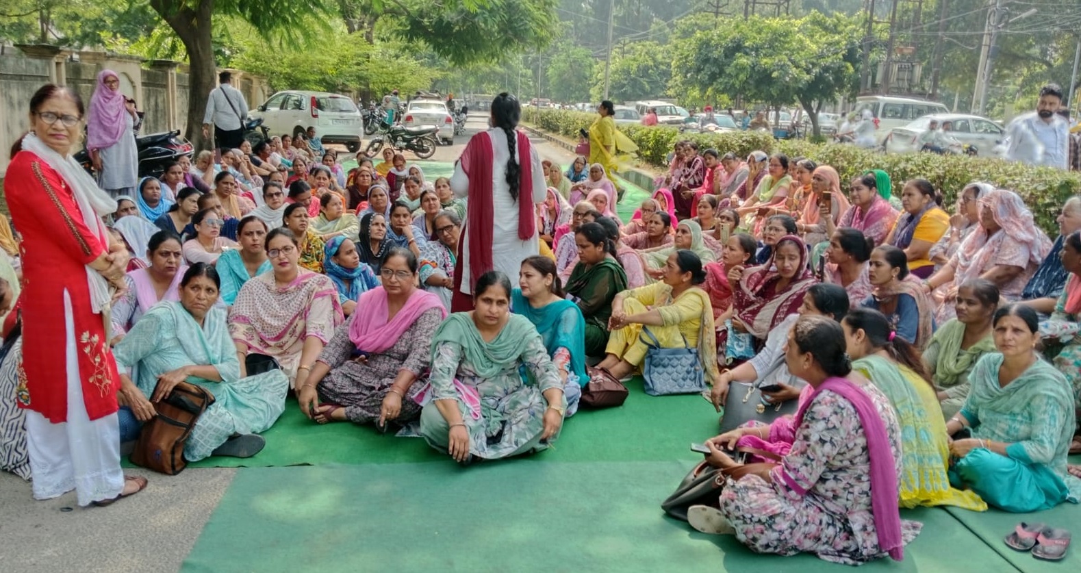 ਅੱਜ ਆਂਗਣਵਾੜੀ ਮੁਲਾਜ਼ਮ ਯੂਨੀਅਨ ਪੰਜਾਬ ਸੀਟੂ ਵੱਲੋਂ ਜ਼ਿਲਾ ਪਟਿਆਲਾ ਵਿਖੇ ਸੰਘਰਸ਼ ਦਾ ਬਿਗਲ ਵਜਾਉਂਦੇ ਹੋਏ ਜ਼ਿਲ੍ਹਾ ਪ੍ਰਧਾਨ ਸ਼ਾਂਤੀ ਦੇਵੀ ਦੀ ਅਗਵਾਈ ਵਿੱਚ ਸੈਂਕੜਿਆਂ ਦੀ ਗਿਣਤੀ ਵਿੱਚ ਇਕੱਠੇ ਹੋ ਕੇ ਸਰਕਾਰ ਦੇ ਖਿਲਾਫ ਰੋਸ ਮੁਜਹਾਰਾ ਕੀਤਾ ਗਿਆ।