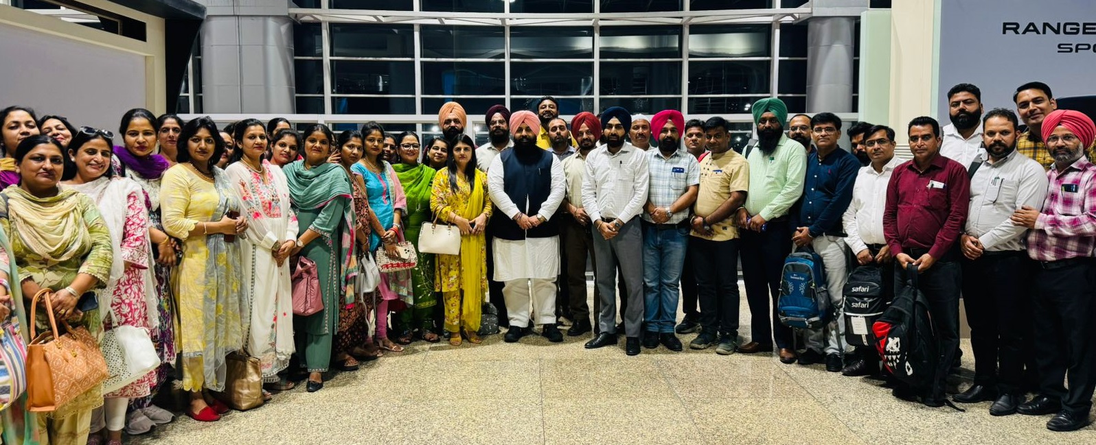 ਸਕੂਲ ਪ੍ਰਬੰਧਨ ਨੂੰ ਵਧੇਰੇ ਸੁਚਾਰੂ ਬਨਾਉਣ ਦੇ ਮਕਸਦ ਨਾਲ ਮੁੱਖ ਮੰਤਰੀ ਭਗਵੰਤ ਸਿੰਘ ਦੀ ਅਗਵਾਈ ਵਾਲੀ ਪੰਜਾਬ ਸਰਕਾਰ ਵੱਲੋਂ ਸ਼ੁਰੂ ਕੀਤੀ ਗਈ ਵਿਸ਼ੇਸ਼ ਟ੍ਰੇਨਿੰਗ ਮੁਹਿੰਮ ਅਧੀਨ ਆਈ.ਆਈ.ਐਮ.ਅਹਿਮਦਾਬਾਦ ਵਿਖੇ ਟ੍ਰੇਨਿੰਗ ਹਾਂਸਲ ਕਰਨ ਲਈ ਜਾਣ ਵਾਲੇ 50 ਹੈਡ ਮਾਸਟਰਾਂ/ ਹੈਡ ਮਿਸਟ੍ਰੈਸ ਦਾ ਤੀਸਰਾ ਬੈਚ ਅੱਜ ਪੰਜਾਬ ਦੇ ਸਕੂਲ ਸਿੱਖਿਆ ਮੰਤਰੀ ਹਰਜੋਤ ਸਿੰਘ ਬੈਂਸ ਵਲੋਂ ਸਾਹਿਬਜ਼ਾਦਾ ਅਜੀਤ ਸਿੰਘ ਨਗਰ ਸਥਿਤ ਹਵਾਈ ਅੱਡੇ ਤੋਂ ਰਵਾਨਾ ਕੀਤਾ ਗਿਆ।