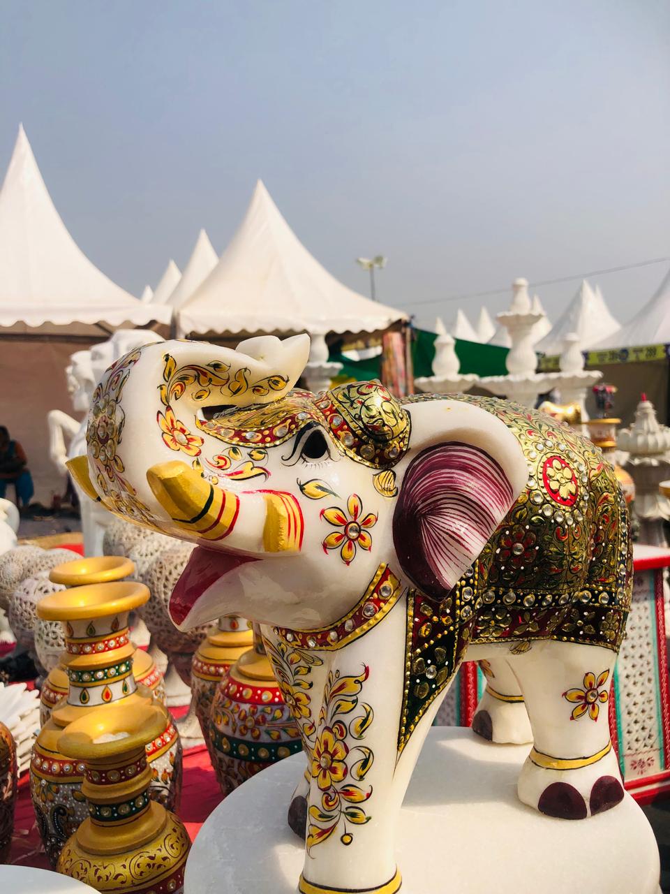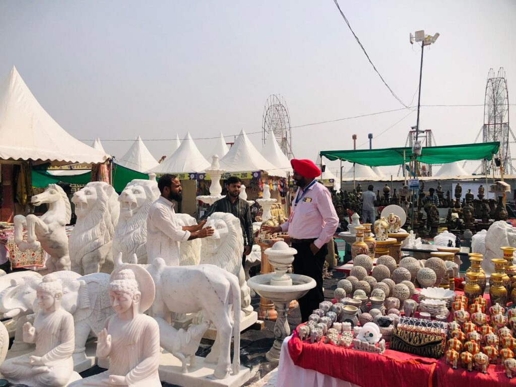ਮੇਲੇ ਵਿੱਚ ਉੱਤਰ ਪ੍ਰਦੇਸ਼ ਦੇ ਆਗਰਾ ਖੇਤਰ ਦੇ ਕਾਰੀਗਰਾਂ ਵੱਲੋਂ ਸੰਗਮਰਮਰ ਦੀਆਂ ਸਲੇਟਾਂ ਨੂੰ ਤਰਾਸ਼ ਕੇ ਵੱਖ-ਵੱਖ ਤਰ੍ਹਾਂ ਦੇ ਬੁੱਤ ਅਤੇ ਉਨ੍ਹਾਂ ਉੱਤੇ ਰੰਗਾਂ ਅਤੇ ਮੋਤੀਆਂ ਦੇ ਨਾਲ਼ ਸੁੰਦਰ ਕਸ਼ੀਦਾਕਾਰੀ ਕੀਤੀ ਹੋਈ ਹੈ। ਇੱਥੇ ਹੱਥ ਨਾਲ਼ ਸੰਗਮਰਮਰ ਤੋਂ ਬਣੀਆਂ ਵਸਤੂਆਂ ਵਿੱਚ ਹਾਥੀ, ਸ਼ੇਰ, ਪਾਣੀ ਦੇ ਫੁਹਾਰੇ, ਸ਼ਤਰੰਜ, ਗਊ, ਗੌਤਮ ਬੁੱਧ ਦੀਆਂ ਮੂਰਤੀਆਂ, ਖੂਬਸੂਰਤ ਗਮਲੇ, ਲੈਂਪ, ਬੈਠਣ ਲਈ ਸਟੂਲ ਅਤੇ ਹੋਰ ਸਜਾਵਟ ਦੀਆਂ ਵਸਤਾਂ ਆਦਿ ਸ਼ਾਮਿਲ ਹਨ। ਇਸ ਤੋਂ ਇਲਾਵਾ ਰਸੋਈ ਦੀਆਂ ਰੋਜ਼ਾਨਾ ਵਰਤੋਂ ਵਾਲੀਆਂ ਵਸਤਾਂ ਵਿੱਚ ਚਕਲੇ, ਮਾਮ-ਦਸਤੇ, ਕੁੰਡੀ-ਸੋਟਾ ਵੀ ਖਿੱਚ ਦਾ ਕੇਂਦਰ ਬਣ ਰਹੇ ਹਨ।