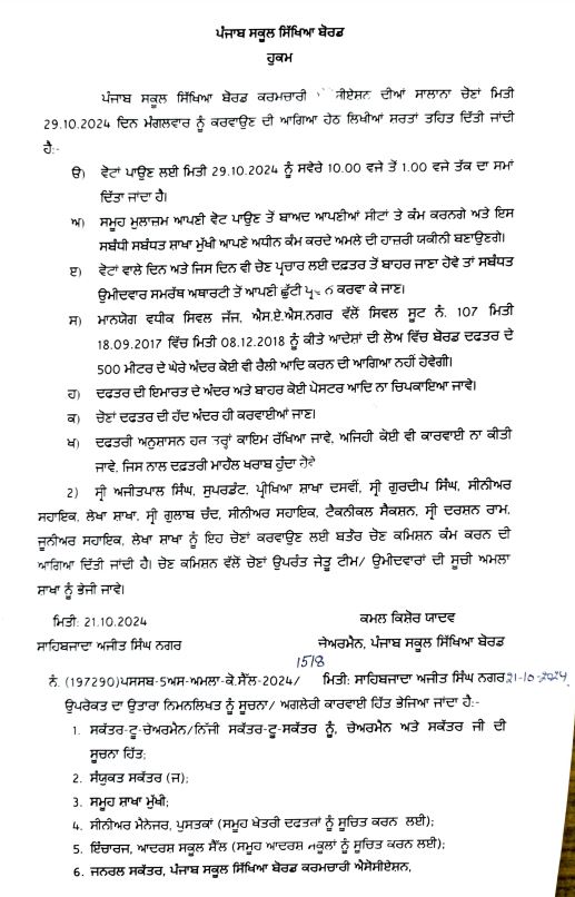 ਬੋਰਡ ਕਰਮਚਾਰੀ ਐਸੋਸੀਏਸ਼ਨ ਦੀ ਚੋਣ ਸਬੰਧੀ ਸ਼ਡਿਊਲ ਜਾਰੀ, ਚੋਣ 29 ਨੂੰ ਪੰਜਾਬ ਅਕਤੂਬਰ 21, 2024ਅਕਤੂਬਰ 21, 2024Leave a Comment on ਬੋਰਡ ਕਰਮਚਾਰੀ ਐਸੋਸੀਏਸ਼ਨ ਦੀ ਚੋਣ ਸਬੰਧੀ ਸ਼ਡਿਊਲ ਜਾਰੀ, ਚੋਣ 29 ਨੂੰ ਮੋਹਾਲੀ, 21 ਅਕਤੂਬਰ, ਦੇਸ਼ ਕਲਿੱਕ ਬਿਓਰੋ : ਪੰਜਾਬ ਸਕੂਲ ਸਿੱਖਿਆ ਬੋਰਡ ਕਰਮਚਾਰੀ ਐਸੋਸੀਏਸ਼ਨ ਦੀ ਸਾਲਾਨਾ ਚੋਣ ਸਬੰਧੀ ਸ਼ਡਿਊਲ ਜਾਰੀ ਕਰ ਦਿੱਤਾ ਗਿਆ ਹੈ। ਬੋਰਡ ਵੱਲੋਂ ਜਾਰੀ ਪੱਤਰ ਮੁਤਾਬਕ ਚੋਣ 29 ਅਕਤੂਬਰ ਮੰਗਲਵਾਰ ਨੂੰ ਹੋਵੇਗੀ।