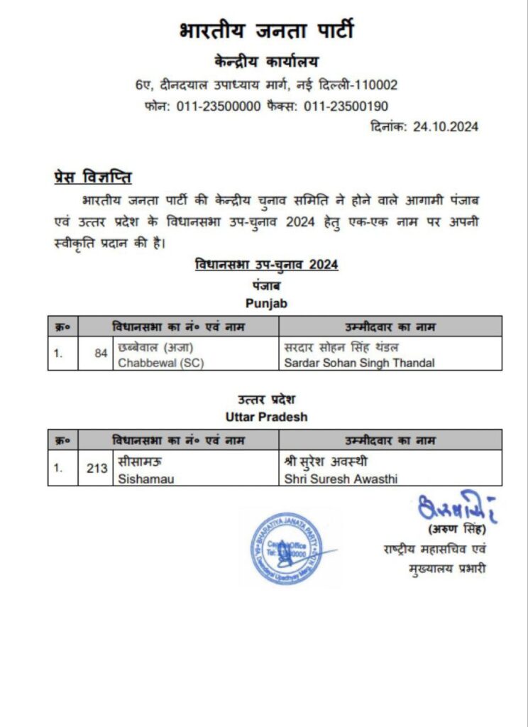 ਵਿਧਾਨ ਸਭਾ ਹਲਕਾ ਚੱਬੇਵਾਲ ਦੀ ਜ਼ਿਮਨੀ ਚੋਣ ਲਈ ਭਾਜਪਾ ਵੱਲੋਂ ਉਮੀਦਵਾਰ ਦਾ ਐਲਾਨ Punjab ਅਕਤੂਬਰ 24, 2024ਅਕਤੂਬਰ 24, 2024Leave a Comment on ਵਿਧਾਨ ਸਭਾ ਹਲਕਾ ਚੱਬੇਵਾਲ ਦੀ ਜ਼ਿਮਨੀ ਚੋਣ ਲਈ ਭਾਜਪਾ ਵੱਲੋਂ ਉਮੀਦਵਾਰ ਦਾ ਐਲਾਨ ਚੰਡੀਗੜ੍ਹ, 24 ਅਕਤੂਬਰ, ਦੇਸ਼ ਕਲਿੱਕ ਬਿਓਰੋ : ਵਿਧਾਨ ਸਭਾ ਹਲਕਾ ਚੱਬੇਵਾਲ ਦੀ ਜ਼ਿਮਨੀ ਚੋਣ ਵਾਸੇ ਭਾਜਪਾ ਨੇ ਉਮੀਦਵਾਰ ਐਲਾਨ ਦਿੱਤਾ ਹੈ। ਭਾਜਪਾ ਵੱਲੋਂ ਸੋਹਣ ਸਿੰਘ ਠੰਡਲ ਨੂੰ ਉਮੀਦਵਾਰ ਬਣਾਇਆ ਗਿਆ ਹੈ। ਜ਼ਿਕਰਯੋਗ ਹੈ ਕਿ ਸੋਹਣ ਸਿੰਘ ਠੰਡਲ ਅੱਜ ਹੀ ਅਕਾਲੀ ਦਲ ਨੂੰ ਅਲਵਿਦਾ ਕਹਿ ਭਾਜਪਾ ਵਿੱਚ ਸ਼ਾਮਲ ਹੋਏ ਹਨ।