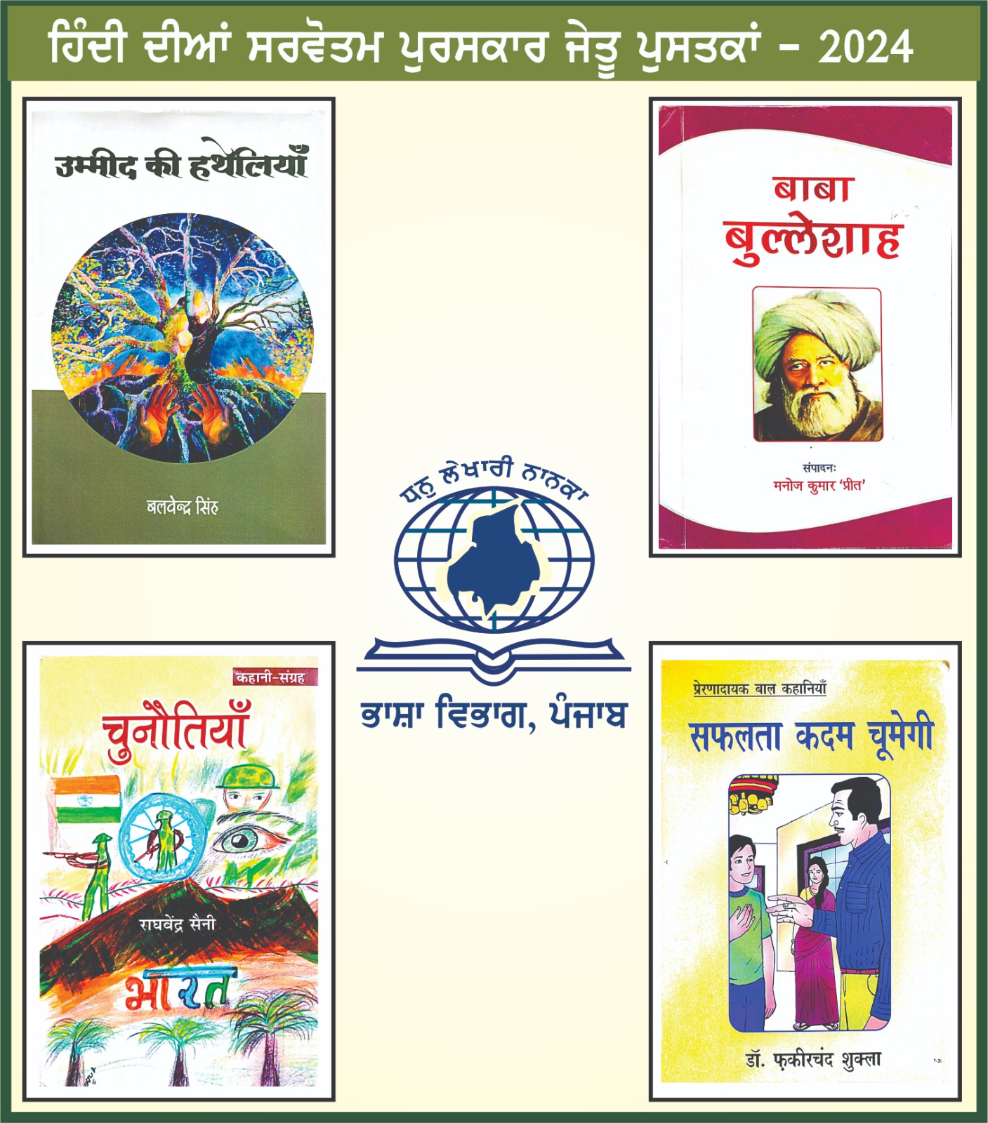 ਪੰਜਾਬ ਸਰਕਾਰ ਵੱਲੋਂ ਭਾਸ਼ਾ ਵਿਭਾਗ, ਪੰਜਾਬ ਰਾਹੀਂ ਹਰ ਸਾਲ ਪੰਜਾਬੀ, ਹਿੰਦੀ, ਸੰਸਕ੍ਰਿਤ ਅਤੇ ਉਰਦੂ ਦੀਆਂ ਪੁਸਤਕਾਂ ਨੂੰ ਪ੍ਰਦਾਨ ਕੀਤੇ ਜਾਣ ਵਾਲੇ ਸਰਵੋਤਮ ਸਾਹਿਤਕ ਪੁਸਤਕ ਪੁਰਸਕਾਰਾਂ ਤਹਿਤ ਵਿਭਾਗ ਵੱਲੋਂ ਸਾਲ 2024 ਲਈ ਹਿੰਦੀ ਦੇ ਵੱਖ-ਵੱਖ ਵੰਨਗੀਆਂ ਨਾਲ ਸਬੰਧਤ 4 ਸਰਵੋਤਮ ਸਾਹਿਤਕ ਪੁਸਤਕ ਪੁਰਸਕਾਰਾਂ ਦਾ ਐਲਾਨ ਕਰ ਦਿੱਤਾ ਗਿਆ ਹੈ।