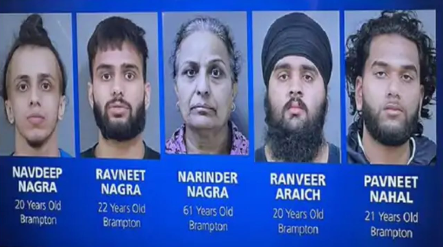 ਮੁਲਜ਼ਮਾਂ ਦੀ ਪਛਾਣ ਬਰੈਂਪਟਨ ਦੀ ਰਹਿਣ ਵਾਲੀ ਨਰਿੰਦਰ ਕੌਰ ਨਾਗਰਾ (61) ਅਤੇ ਉਸ ਦੇ ਦੋ ਪੁੱਤਰਾਂ ਨਵਦੀਪ ਨਾਗਰਾ (20) ਅਤੇ ਰਵਨੀਤ ਨਾਗਰਾ (22) ਵਜੋਂ ਹੋਈ ਹੈ। ਇਸ ਤੋਂ ਇਲਾਵਾ ਰਣਵੀਰ (20) ਅਤੇ ਪਵਨੀਤ ਨਾਹਲ (21) ਵੀ ਦੋਸ਼ੀ ਹਨ। ਦੋਸ਼ੀਆਂ ‘ਤੇ ਕਰੀਬ 160 ਨਿਯਮਾਂ ਨੂੰ ਤੋੜਨ ਦਾ ਦੋਸ਼ ਹੈ। ਇਸ ਵਿੱਚ ਕਈ ਕੈਨੇਡੀਅਨ ਲੋਕ ਵੀ ਸ਼ਾਮਲ ਹਨ। ਇਹ ਜਾਣਕਾਰੀ ਪੀਲ ਰੀਜਨਲ ਪੁਲਿਸ ਨੇ ਦਿੱਤੀ ਹੈ। ਮੁਲਜ਼ਮ ਮੂਲ ਰੂਪ ਵਿੱਚ ਪੰਜਾਬ ਦੇ ਦੱਸੇ ਜਾਂਦੇ ਹਨ।