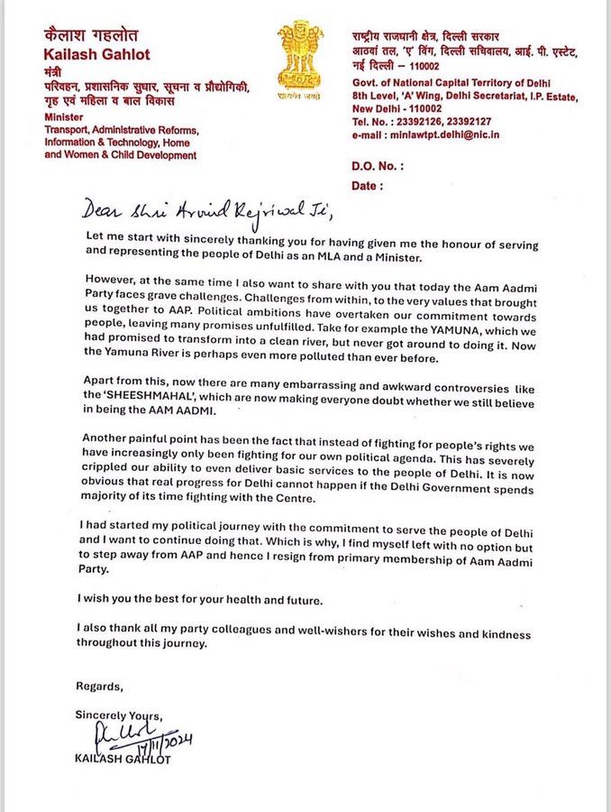 ਆਮ ਆਦਮੀ ਪਾਰਟੀ ਦੇ ਮੰਤਰੀ ਨੇ ਦਿੱਤਾ ਅਸਤੀਫਾ ਦਿੱਲੀ ਨਵੰਬਰ 17, 2024ਨਵੰਬਰ 17, 2024Leave a Comment on ਆਮ ਆਦਮੀ ਪਾਰਟੀ ਦੇ ਮੰਤਰੀ ਨੇ ਦਿੱਤਾ ਅਸਤੀਫਾ ਨਵੀਂ ਦਿੱਲੀ: 17 ਨਵੰਬਰ, ਦੇਸ਼ ਕਲਿੱਕ ਬਿਓਰੋਦਿੱਲੀ ਦੇ ਟਰਾਂਸਪੋਰਟ ਮੰਤਰੀ ਕੈਲਾਸ਼ ਗਹਿਲੋਤ ਨੇ ਆਮ ਆਦਮੀ ਪਾਰਟੀ ਦੀ ਮੁਢਲੀ ਮੈਂਬਰਸ਼ਿਪ ਤੋਂ ਅਸਤੀਫਾ ਦੇ ਦਿੱਤਾ ਹੈ।