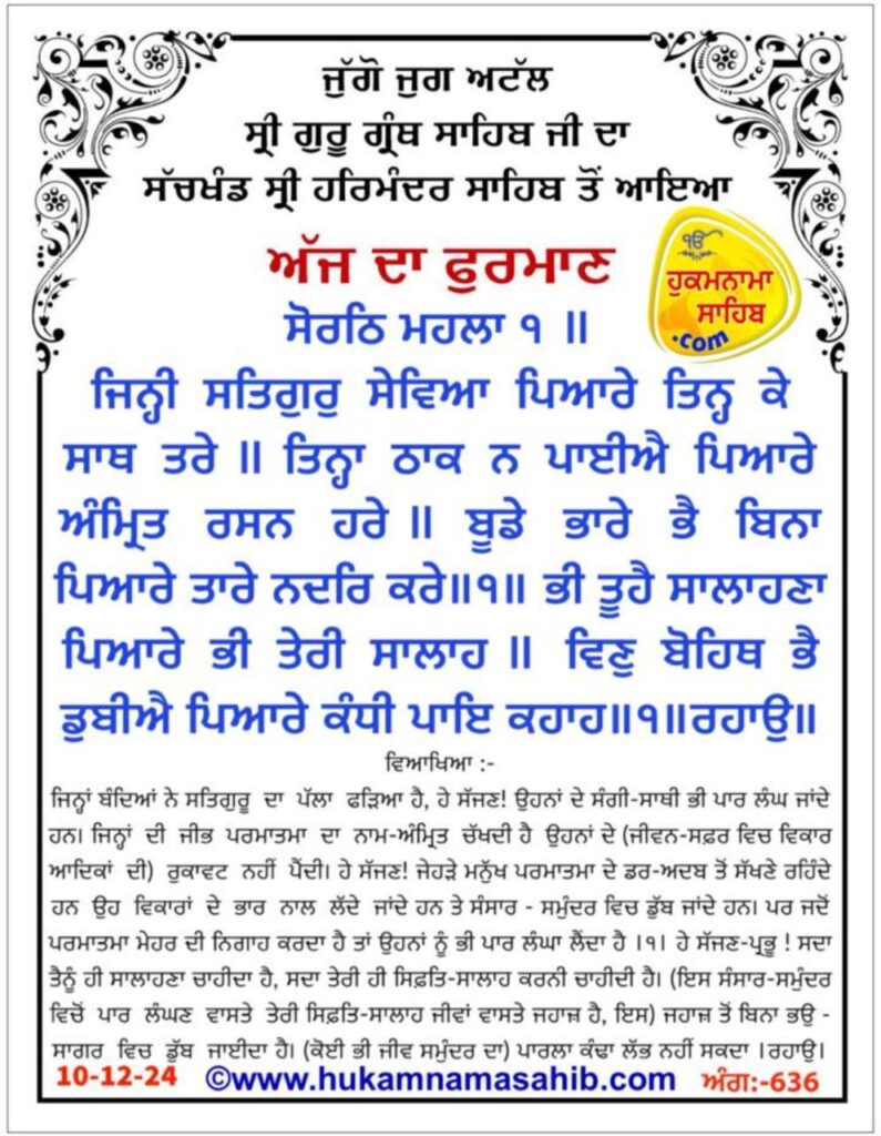 ਮੰਗਲਵਾਰ, ੨੫ ਮੱਘਰ (ਸੰਮਤ ੫੫੬ ਨਾਨਕਸ਼ਾਹੀ)10-12-2024