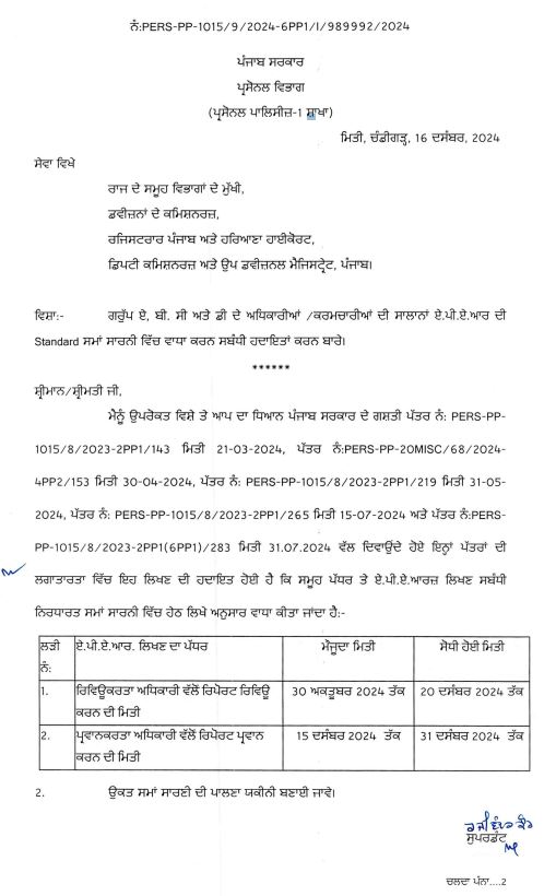 ਪੰਜਾਬ ਸਰਕਾਰ ਵੱਲੋਂ ਮੁਲਾਜ਼ਮਾਂ ਦੀ ਸਾਲਾਨਾ ਏ ਪੀ ਏ ਆਰ ਸਬੰਧੀ ਅਹਿਮ ਪੱਤਰ ਜਾਰੀ ਪੰਜਾਬ ਦਸੰਬਰ 16, 2024ਦਸੰਬਰ 16, 2024Leave a Comment on ਪੰਜਾਬ ਸਰਕਾਰ ਵੱਲੋਂ ਮੁਲਾਜ਼ਮਾਂ ਦੀ ਸਾਲਾਨਾ ਏ ਪੀ ਏ ਆਰ ਸਬੰਧੀ ਅਹਿਮ ਪੱਤਰ ਜਾਰੀ ਚੰਡੀਗੜ੍ਹ, 16 ਦਸੰਬਰ, ਦੇਸ਼ ਕਲਿੱਕ ਬਿਓਰੋ : ਪੰਜਾਬ ਸਰਕਾਰ ਵੱਲੋਂ ਗਰੁੱਪ ਏ, ਬੀ, ਸੀ ਅਤੇ ਡੀ ਦੇ ਅਧਿਕਾਰੀਆਂ, ਕਰਮਚਾਰੀਆਂ ਦੀ ਸਲਾਨਾ ਏ ਪੀ ਏ ਆਰ ਦੀ ਸੈਂਟਡਰਡ ਸਮਾਂ ਸਾਰਨੀ ਵਿੱਚ ਵਾਧਾ ਕੀਤਾ ਗਿਆ ਹੈ।