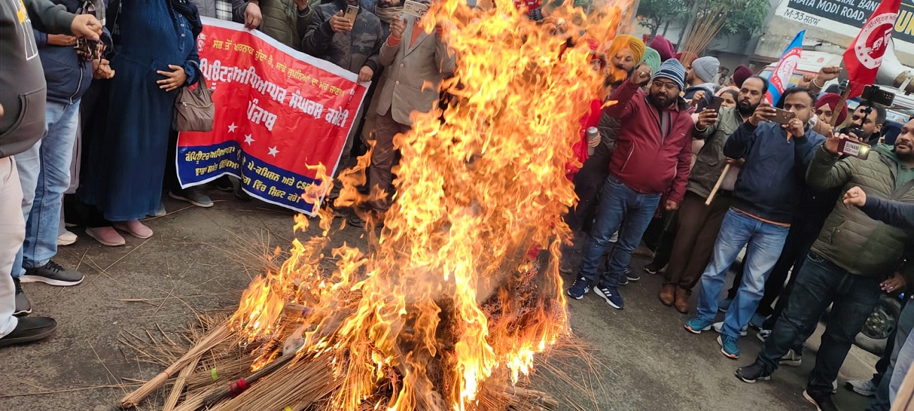 ਸੂਬੇ ਭਰ ਦੇ ਸਰਕਾਰੀ ਸਕੂਲਾਂ ਵਿੱਚ ਪਿਛਲੇ 20 ਸਾਲਾਂ ਤੋਂ ਸੇਵਾਵਾਂ ਨਿਭਾ ਰਹੇ ਕੰਪਿਊਟਰ ਅਧਿਆਪਕਾਂ ਵੱਲੋਂ ਆਪਣੀਆਂ ਜਾਇਜ਼ ਮੰਗਾਂ ਨੂੰ ਪੂਰਾ ਕਰਵਾਉਣ ਦੇ ਲਈ ਸ਼ੁਰੂ ਕੀਤੇ ਗਏ ਸੰਘਰਸ਼ ਅਧੀਨ ਅੱਜ ਹਜਾਰਾਂ ਕੰਪਿਊਟਰ ਅਧਿਆਪਕਾਂ ਨੇ ਕੰਪਿਊਟਰ ਅਧਿਆਪਕ ਭੁੱਖ ਹੜਤਾਲ਼ ਸੰਘਰਸ਼ ਕਮੇਟੀ ਪੰਜਾਬ ਦੇ ਬੈਨਰ ਹੇਠ ਇਕੱਠਾ ਹੁੰਦੇ ਹੋਏ ਆਮ ਆਦਮੀ ਪਾਰਟੀ ਦੇ ਸੂਬਾ ਪ੍ਰਧਾਨ ਅਮਨ ਅਰੋੜਾ ਦੇ ਘਰ ਦੇ ਅੱਗੇ ਵਿਸ਼ਾਲ ਪ੍ਰਦਰਸ਼ਨ ਕਰਦੇ ਹੋਏ ਆਪਣੀਆਂ ਜਾਇਜ ਮੰਗਾਂ ਸਬੰਧੀ ਆਵਾਜ਼ ਬੁਲੰਦ ਕੀਤੀ। ਇਸ ਮੌਕੇ ਕੰਪਿਊਟਰ ਅਧਿਆਪਕਾਂ ਨੇ ‘ਝੂਠੇ ਵਾਅਦਿਆਂ ਦੀ ਲੋਹੜੀ’ ਬਾਲ ਕੇ ਪੰਜਾਬ ਸਰਕਾਰ ਦੇ ਖਿਲਾਫ ਜੰਮ ਕੇ ਪਿੱਟ ਸਿਆਪਾ ਕੀਤਾ। ਅੱਜ ਦੇ ਪ੍ਰਦਰਸ਼ਨ ਦੀ ਖ਼ਾਸ ਗੱਲ ਇਹ ਰਹੀ ਕਿ ਸਮੂਹ ਕੰਪਿਊਟਰ ਅਧਿਆਪਕ ਅੱਜ ਵੱਡੀ ਗਿਣਤੀ ਵਿੱਚ ਝਾੜੂ ਲੈਕੇ ਪਾਰਟੀ ਪ੍ਰਧਾਨ ਦੇ ਘਰ ਅੱਗੇ ਪਹੁੰਚੇ,ਪਹਿਲਾਂ ਉਨ੍ਹਾਂ ਵੱਲੋਂ ਵੱਡੀ ਗਿਣਤੀ ਵਿੱਚ ਝਾੜੂ ਫੂਕਣ ਦਾ ਐਲਾਨ ਕੀਤਾ ਗਿਆ ਸੀ ਪਰ ਕਮੇਟੀ ਦੇ ਫੈਸਲੇ ਅਨੁਸਾਰ ਸਮੂਹ ਅਧਿਆਪਕਾਂ ਨੇ ਪਾਰਟੀ ਪ੍ਰਧਾਨ ਦੇ ਘਰ ਅੱਗੇ ਝਾੜੂ ਸੁੱਟਦੇ ਹੋਏ ਆਪਣਾ ਰੋਸ਼ ਜਾਹਿਰ ਕੀਤਾ।