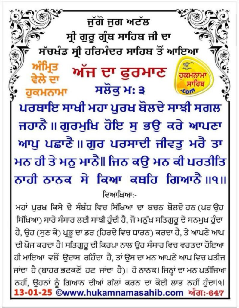 Monday, 30th Poh (Samvat 556 Nanakshahi)
