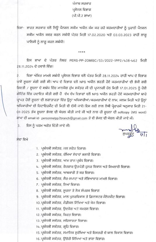 ਮੁਲਾਜ਼ਮਾਂ ਦੀ ਨਿਊ ਪੈਨਸ਼ਨ ਸਕੀਮ ਸਬੰਧੀ ਸਰਕਾਰ ਨੇ ਵਿਭਾਗਾਂ ਨੂੰ ਜਾਰੀ ਕੀਤਾ ਅਹਿਮ ਪੱਤਰ ਪੰਜਾਬ ਜਨਵਰੀ 18, 2025ਜਨਵਰੀ 18, 2025Leave a Comment on ਮੁਲਾਜ਼ਮਾਂ ਦੀ ਨਿਊ ਪੈਨਸ਼ਨ ਸਕੀਮ ਸਬੰਧੀ ਸਰਕਾਰ ਨੇ ਵਿਭਾਗਾਂ ਨੂੰ ਜਾਰੀ ਕੀਤਾ ਅਹਿਮ ਪੱਤਰ ਚੰਡੀਗੜ੍ਹ, 18 ਜਨਵਰੀ, ਦੇਸ਼ ਕਲਿੱਕ ਬਿਓਰੋ : ਮੁਲਾਜ਼ਮਾਂ ਦੀ ਨਿਊ ਪੈਨਸ਼ਨ ਸਕੀਮ ਸਬੰਧੀ ਸਰਕਾਰ ਨੇ ਵਿਭਾਗਾਂ ਨੂੰ ਅਹਿਮ ਪੱਤਰ ਜਾਰੀ ਕੀਤਾ ਗਿਆ ਹੈ।