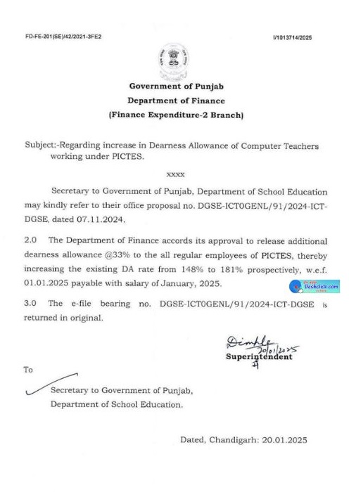 ਪੰਜਾਬ ਸਰਕਾਰ ਵੱਲੋਂ ਅਧਿਆਪਕਾਂ ਦੇ DA ’ਚ ਵਾਧਾ ਪੰਜਾਬ ਜਨਵਰੀ 20, 2025ਜਨਵਰੀ 20, 2025Leave a Comment on ਪੰਜਾਬ ਸਰਕਾਰ ਵੱਲੋਂ ਅਧਿਆਪਕਾਂ ਦੇ DA ’ਚ ਵਾਧਾ ਚੰਡੀਗੜ੍ਹ, 20 ਜਨਵਰੀ, ਦੇਸ਼ ਕਲਿੱਕ ਬਿਓਰੋ : ਪੰਜਾਬ ਸਰਕਾਰ ਵੱਲੋਂ ਕੰਪਿਊਟਰ ਅਧਿਆਪਕਾਂ ਦੇ ਡੀਏ ਵਿੱਚ ਵਾਧਾ ਕੀਤਾ ਗਿਆ ਹੈ। ਇਸ ਸਬੰਧੀ ਪੱਤਰ ਜਾਰੀ ਕਰ ਦਿੱਤਾ ਗਿਆ ਹੈ।