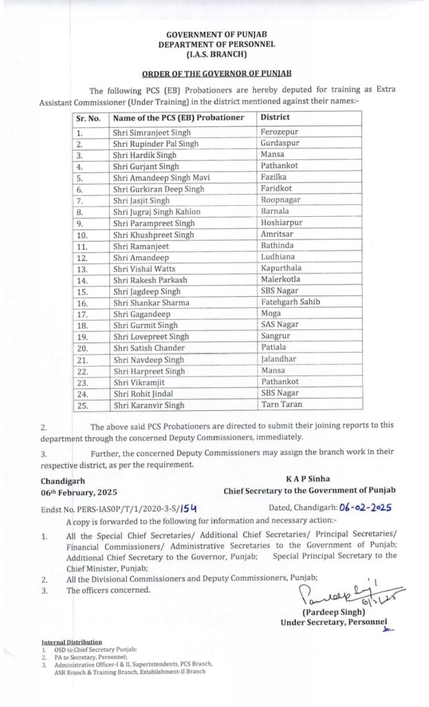 25 PCS ਅਧਿਕਾਰੀਆਂ ਨੂੰ ਤਰੱਕੀ ਤੋਂ ਬਾਅਦ ਵੱਖ ਵੱਖ ਜ਼ਿਲ੍ਹਿਆਂ ‘ਚ ਲਾਇਆ ਵਾਧੂ ਸਹਾਇਕ ਕਮਿਸ਼ਨਰ ਪੰਜਾਬ ਫਰਵਰੀ 6, 2025ਫਰਵਰੀ 6, 2025Leave a Comment on 25 PCS ਅਧਿਕਾਰੀਆਂ ਨੂੰ ਤਰੱਕੀ ਤੋਂ ਬਾਅਦ ਵੱਖ ਵੱਖ ਜ਼ਿਲ੍ਹਿਆਂ ‘ਚ ਲਾਇਆ ਵਾਧੂ ਸਹਾਇਕ ਕਮਿਸ਼ਨਰ 25 PCS ਅਧਿਕਾਰੀਆਂ ਨੂੰ ਤਰੱਕੀ ਤੋਂ ਬਾਅਦ ਵੱਖ ਵੱਖ ਜ਼ਿਲ੍ਹਿਆਂ ‘ਚ ਲਾਇਆ ਵਾਧੂ ਸਹਾਇਕ ਕਮਿਸ਼ਨਰਚੰਡੀਗੜ੍ਹ: 6 ਫਰਵਰੀ, ਦੇਸ਼ ਕਲਿੱਕ ਬਿਓਰੋਪੰਜਾਬ ਸਰਕਾਰ ਵੱਲੋਂ 25 PCS ਤਰੱਕੀ ਤੋਂ ਬਾਅਦ ਅਧਿਕਾਰੀਆਂ ਨੂੰ ਟ੍ਰੇਨਿੰਗ ਲਈ ਵੱਖ ਵੱਖ ਜ਼ਿਲ੍ਹਿਆਂ ‘ਚ ਵਾਧੂ ਸਹਾਇਕ ਕਮਿਸ਼ਨਰ ਵਜੋਂ ਨਿਯੁਕਤ ਕੀਤਾ ਗਿਆ ਹੈ।