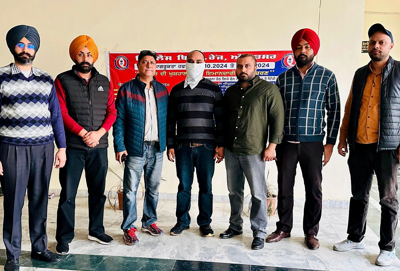 ਉਨ੍ਹਾਂ ਦੱਸਿਆ ਕਿ ਇਸ ਸਬੰਧੀ ਭ੍ਰਿਸ਼ਟਾਚਾਰ ਰੋਕੂ ਕਾਨੂੰਨ ਤਹਿਤ ਵਿਜੀਲੈਂਸ ਬਿਊਰੋ ਦੇ ਥਾਣਾ, ਅੰਮ੍ਰਿਤਸਰ ਰੇਂਜ ਵਿਖੇ ਮੁਕੱਦਮਾ ਦਰਜ ਕੀਤਾ ਗਿਆ ਹੈ। ਉਨ੍ਹਾਂ ਅੱਗੇ ਦੱਸਿਆ ਕਿ ਮੁਲਜ਼ਮ ਨੂੰ ਭਲਕੇ ਅਦਾਲਤ ਵਿੱਚ ਪੇਸ਼ ਕੀਤਾ ਜਾਵੇਗਾ ਅਤੇ ਇਸ ਮਾਮਲੇ ਦੀ ਅਗਲੇਰੀ ਜਾਂਚ ਜਾਰੀ ਹੈ।