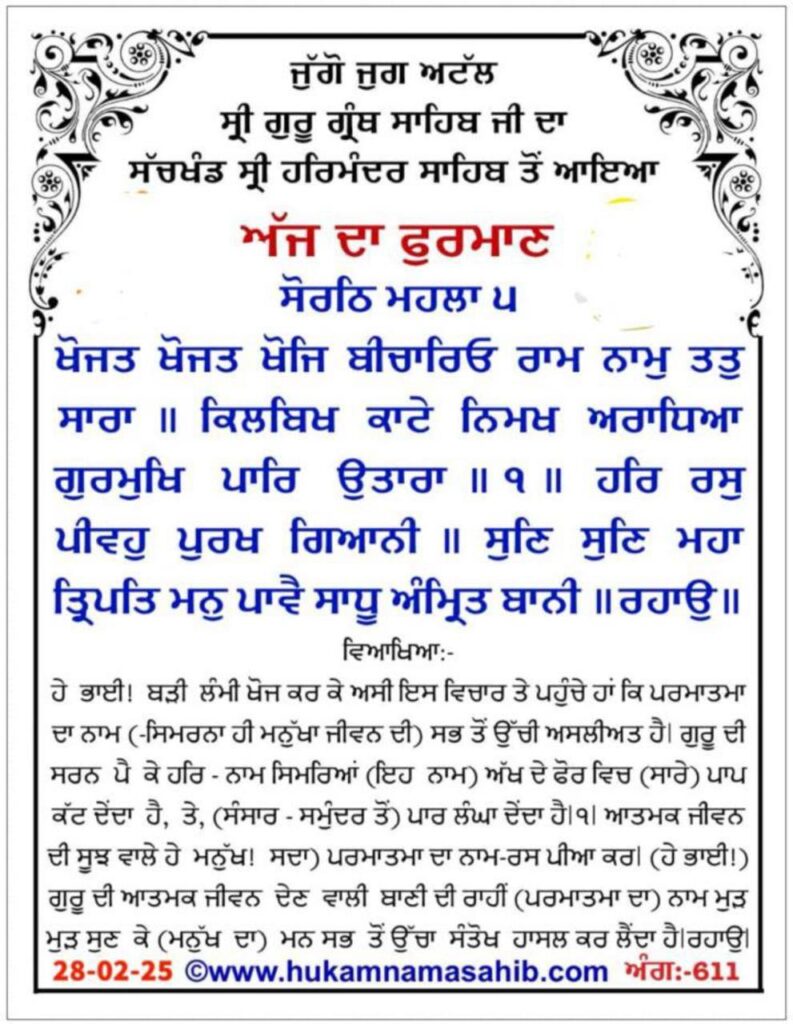 Friday, 17th Phalgun (Samvat 556 Nanakshahi)