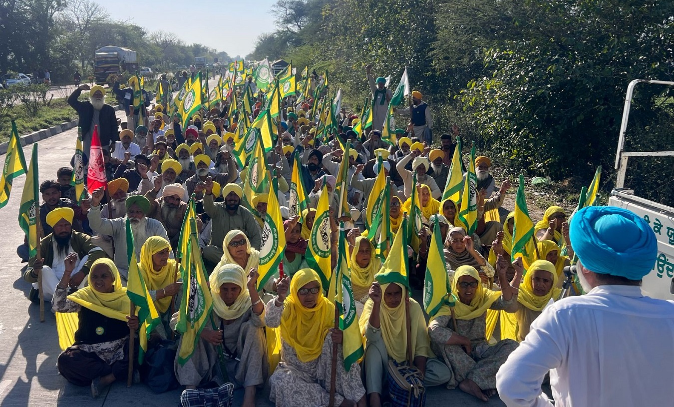 ਲਗਾਤਾਰ ਹਜ਼ਾਰਾਂ ਛਾਪੇਮਾਰੀਆਂ ਗ੍ਰਿਫਤਾਰੀਆਂ ਦੇ ਬਾਵਜੂਦ ਐੱਸ ਕੇ ਐੱਮ ਭਾਰਤ ਦੇ ਸੱਦੇ ‘ਤੇ ਇਸ ਦੀਆਂ ਮੈਂਬਰ ਪੰਜਾਬ ਦੀਆਂ ਸਮੂਹ ਕਿਸਾਨ ਜਥੇਬੰਦੀਆਂ ਦੇ ਫੈਸਲੇ ਅਨੁਸਾਰ ਅੱਜ ਕਿਸਾਨਾਂ ਮਜ਼ਦੂਰਾਂ ਦੇ 7 ਰੋਜ਼ਾ ਪੱਕੇ ਮੋਰਚੇ ਲਈ ਚੰਡੀਗੜ੍ਹ ਵੱਲ ਮਾਰਚ ਨੂੰ ਮਾਨ ਸਰਕਾਰ ਦੀ ਪੁਲਿਸ ਨੇ 10 ਥਾਂਵਾਂ ‘ਤੇ ਸੜਕਾਂ ਜਾਮ ਕਰਕੇ ਰੋਕ ਲਿਆ। ਇਹ ਜਾਣਕਾਰੀ ਦਿੰਦਿਆਂ ਉਗਰਾਹਾਂ ਜਥੇਬੰਦੀ ਦੇ ਆਗੂ ਸੁਖਦੇਵ ਸਿੰਘ ਕੋਕਰੀ ਕਲਾਂ ਨੇ ਦੱਸਿਆ ਕਿ ਜੇਠੂਕੇ (ਬਠਿੰਡਾ),ਬਡਬਰ (ਬਰਨਾਲਾ), ਘਰਾਚੋਂ (ਸੰਗਰੂਰ) ,ਢੈਪਈ (ਮਾਨਸਾ), ਮਹਿਮੂਦਪੁਰ (ਪਟਿਆਲਾ), ਧਮੋਟ (ਲੁਧਿਆਣਾ) ਭਲਾਈਆਣਾ (ਮੁਕਤਸਰ), ਲਾਧੂਕਾ (ਫਾਜ਼ਿਲਕਾ), ਥੋਬਾ (ਅੰਮ੍ਰਿਤਸਰ) ਅਤੇ ਮਵਾਈ (ਜਲੰਧਰ) ਵਿਖੇ ਸੈਂਕੜੇ ਔਰਤਾਂ ਸਮੇਤ ਜ਼ਬਰਦਸਤੀ ਰੋਕੇ ਗਏ ਕਈ ਹਜ਼ਾਰ ਕਿਸਾਨਾਂ ਮਜ਼ਦੂਰਾਂ ਨੇ ਸੜਕਾਂ ਦੇ ਕਿਨਾਰੇ ਬੈਠ ਕੇ ਮੋਰਚੇ ਸ਼ੁਰੂ ਕਰ ਦਿੱਤੇ। ਕਈ ਜ਼ਿਲ੍ਹਿਆਂ ਵਿੱਚ ਕੁੱਝ ਥਾਵਾਂ ‘ਤੇ ਛੋਟੇ ਕਾਫ਼ਲਿਆਂ ਨੂੰ ਗ੍ਰਿਫਤਾਰ ਕਰ ਕੇ ਥਾਣਿਆਂ ‘ ‘ਚ ਡੱਕ ਦਿੱਤਾ ਗਿਆ। ਵੱਖ ਵੱਖ ਥਾਵਾਂ ‘ਤੇ ਸੰਬੋਧਨ ਕਰਨ ਵਾਲੇ ਬੁਲਾਰਿਆਂ ਨੇ 3 ਮਾਰਚ ਦੀ ਮੀਟਿੰਗ ਸਮੇਂ ਮੁੱਖ ਮੰਤਰੀ ਭਗਵੰਤ ਮਾਨ ਵੱਲੋਂ ਕਿਸਾਨ ਆਗੂਆਂ ਪ੍ਰਤੀ ਅਪਮਾਨਜਨਕ ਵਤੀਰਾ ਧਾਰਨ ਅਤੇ ਮੀਟਿੰਗ ਵਿੱਚੋਂ ਵਾਕਆਊਟ ਕਰਨ ਦੀ ਸਖ਼ਤ ਨਿਖੇਧੀ ਕੀਤੀ। ਸ਼ਾਂਤਮਈ ਜਨਤਕ ਸੰਘਰਸ਼ ਦੇ ਸੰਵਿਧਾਨਕ ਜਮਹੂਰੀ ਹੱਕ ਨੂੰ ਪੈਰਾਂ ਹੇਠ ਮਸਲਦਿਆਂ ਦਿਨੇ ਰਾਤ ਛਾਪੇਮਾਰੀ ਦੌਰਾਨ ਐੱਸ ਕੇ ਐੱਮ ਦੇ ਮੁੱਖ ਆਗੂਆਂ ਬਲਵੀਰ ਸਿੰਘ ਰਾਜੇਵਾਲ,ਰੁਲਦੂ ਸਿੰਘ ਮਾਨਸਾ ਅਤੇ ਜੋਗਿੰਦਰ ਸਿੰਘ ਉਗਰਾਹਾਂ ਸਮੇਤ ਗ੍ਰਿਫਤਾਰ ਕੀਤੇ ਗਏ ਸੈਂਕੜੇ ਕਿਸਾਨਾਂ ਮਜ਼ਦੂਰਾਂ ਨੂੰ ਤੁਰੰਤ ਰਿਹਾਅ ਕਰਨ ਦੀ ਮੰਗ ਕੀਤੀ।