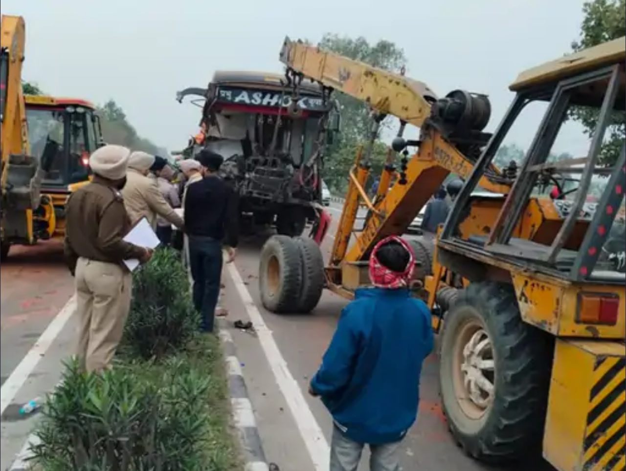 ਜਲੰਧਰ ‘ਚ ਅੱਜ ਸੋਮਵਾਰ ਸਵੇਰੇ ਟੂਰਿਸਟ ਬੱਸ ਦੀ ਇੱਟਾਂ ਨਾਲ ਭਰੀ ਟਰੈਕਟਰ-ਟਰਾਲੀ ਨਾਲ ਟੱਕਰ ਹੋ ਗਈ। ਇਸ ਹਾਦਸੇ ‘ਚ 2 ਲੋਕਾਂ ਦੀ ਮੌਤ ਹੋ ਗਈ, ਜਦਕਿ 11 ਲੋਕ ਗੰਭੀਰ ਜ਼ਖਮੀ ਹੋ ਗਏ। ਜ਼ਖਮੀਆਂ ਨੂੰ ਇਲਾਜ ਲਈ ਹਸਪਤਾਲ ‘ਚ ਭਰਤੀ ਕਰਵਾਇਆ ਗਿਆ ਹੈ। ਬੱਸ ਦਿੱਲੀ ਤੋਂ ਜੰਮੂ ਵੱਲ ਜਾ ਰਹੀ ਸੀ।