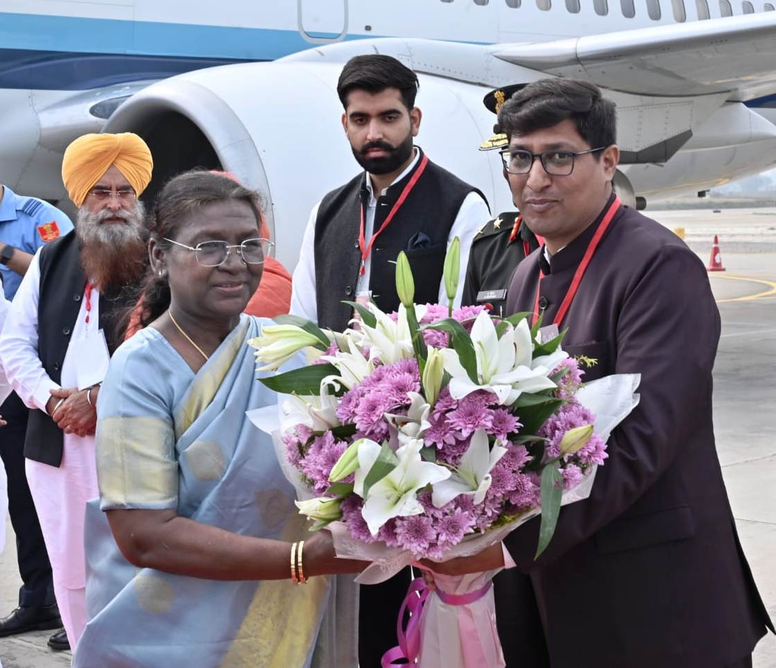 ਇਸ ਤੋਂ ਪਹਿਲਾਂ ਰਾਸ਼ਟਰਪਤੀ ਸ੍ਰੀਮਤੀ ਦ੍ਰੋਪਦੀ ਮੁਰਮੂ ਜੀ ਦਾ ਬਠਿੰਡਾ ਵਿਖੇ ਪਹੁੰਚਣ ‘ਤੇ ਗਵਰਨਰ ਪੰਜਾਬ ਸ਼੍ਰੀ ਗੁਲਾਬ ਚੰਦ ਕਟਾਰੀਆ, ਕੈਬਨਿਟ ਮੰਤਰੀ ਸ੍ਰ ਗੁਰਮੀਤ ਸਿੰਘ ਖੁੱਡੀਆਂ, ਵਿਧਾਇਕ ਤਲਵੰਡੀ ਸਾਬੋ ਤੇ ਚੀਫ਼ ਵਿਪ ਪ੍ਰੋ ਬਲਜਿੰਦਰ ਕੌਰ, ਨਗਰ ਨਿਗਮ ਦੇ ਮੇਅਰ ਸ਼੍ਰੀ ਪਦਮਜੀਤ ਮਹਿਤਾ, ਡਵੀਜ਼ਨਲ ਕਮਿਸ਼ਨਰ ਫ਼ਰੀਦਕੋਟ ਸ਼੍ਰੀ ਮਨਜੀਤ ਸਿੰਘ ਬਰਾੜ, ਡਿਪਟੀ ਕਮਿਸ਼ਨਰ ਸ਼੍ਰੀ ਸ਼ੌਕਤ ਅਹਿਮਦ ਪਰੇ, ਸਪੈਸ਼ਲ ਡੀ.ਜੀ.ਪੀ ਸ਼੍ਰੀ ਜਤਿੰਦਰ ਜੈਨ, ਏਡੀਜੀਪੀ ਸ਼੍ਰੀ ਐੱਸਪੀਐੱਸ ਪਰਮਾਰ, ਡੀ.ਆਈ.ਜੀ ਬਠਿੰਡਾ ਰੇਂਜ ਹਰਜੀਤ ਸਿੰਘ ਅਤੇ ਐੱਸਐੱਸਪੀ ਮੈਡਮ ਅਮਨੀਤ ਕੌਂਡਲ ਨੇ ਵਿਸ਼ੇਸ਼ ਤੌਰ ‘ਤੇ ਸਵਾਗਤ ਕੀਤਾ।
