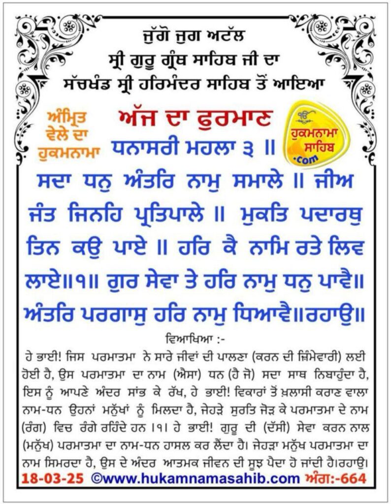 ਸੱਚਖੰਡ ਸ੍ਰੀ ਹਰਿਮੰਦਰ ਸਾਹਿਬ, ਸ੍ਰੀ ਅੰਮ੍ਰਿਤਸਰ, 18-03-2025