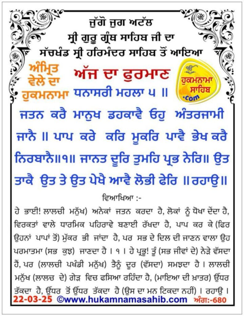 ਸੱਚਖੰਡ ਸ੍ਰੀ ਹਰਿਮੰਦਰ ਸਾਹਿਬ, ਸ੍ਰੀ ਅੰਮ੍ਰਿਤਸਰ, 22-03-2025