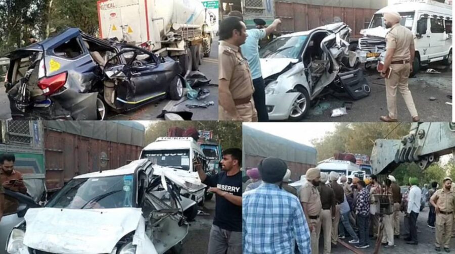 ਪੰਜਾਬ-ਹਰਿਆਣਾ ਸਰਹੱਦ ‘ਤੇ ਸਥਿਤ ਸ਼ੰਭੂ ਬਾਰਡਰ ਨੂੰ ਬੀਤੇ ਦਿਨੀ ਹੀ ਵਾਹਨਾਂ ਦੀ ਆਵਾਜਾਈ ਲਈ ਖੋਲ੍ਹਿਆ ਗਿਆ। ਸ਼ੰਭੂ ਬਾਰਡਰ ਖੁੱਲਣ ਦੇ 24 ਘੰਟਿਆਂ ਦੇ ਅੰਦਰ ਹੀ ਵੱਡਾ ਹਾਦਸਾ ਸ਼ੰਭੂ ਟੋਲ ਪਲਾਜ਼ਾ ਨੇੜੇ ਵਾਪਰਿਆ।ਇਸ ਹਾਦਸੇ ਵਿੱਚ ਦੋ ਟਰੱਕ, ਦੋ ਕਾਰਾਂ ਅਤੇ ਇੱਕ ਟੈਂਪੂ ਟਰੈਵਲਰ ਹਾਦਸੇ ਦਾ ਸ਼ਿਕਾਰ ਹੋ ਗਏ। ਦੋ ਕਾਰਾਂ ਦੇ ਪਰਖੱਚੇ ਉੱਡ ਗਏ। ਹਾਦਸੇ ਵਿੱਚ ਵਾਹਨਾਂ ਵਿੱਚ ਸਫ਼ਰ ਕਰ ਰਹੀਆਂ ਔਰਤਾਂ ਅਤੇ ਬੱਚਿਆਂ ਸਮੇਤ ਦਰਜਨ ਯਾਤਰੀ ਜ਼ਖ਼ਮੀ ਹੋ ਗਏ।