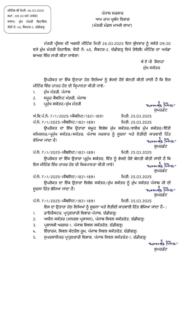 ਬਜਟ ਤੋਂ ਪਹਿਲਾਂ ਬੁਲਾਈ ਐਮਰਜੈਂਸੀ ਕੈਬਨਿਟ ਮੀਟਿੰਗ ਪੰਜਾਬ ਮਾਰਚ 25, 2025ਮਾਰਚ 25, 2025Leave a Comment on ਬਜਟ ਤੋਂ ਪਹਿਲਾਂ ਬੁਲਾਈ ਐਮਰਜੈਂਸੀ ਕੈਬਨਿਟ ਮੀਟਿੰਗ ਚੰਡੀਗੜ੍ਹ: 25 ਮਾਰਚ, ਦੇਸ਼ ਕਲਿੱਕ ਬਿਓਰੋ ਕੱਲ੍ਹ 26 ਮਾਰਚ ਨੂੰ ਪੰਜਾਬ ਦਾ ਬਜਟ ਵਿਧਾਨ ਸਭਾ ਵਿੱਚ ਪੇਸ਼ ਕੀਤਾ ਜਾਣਾ ਹੈ। ਪੰਜਾਬ ਦੇ ਮੁੱਖ ਮੰਤਰੀ ਭਗਵੰਤ ਮਾਨ ਨੇ ਉਸ ਤੋਂ ਪਹਿਲਾਂ ਮੰਤਰੀ ਮੰਡਲ ਦੀ ਮੀਟਿੰਗ ਬੁਲਾਈ ਹੈ।