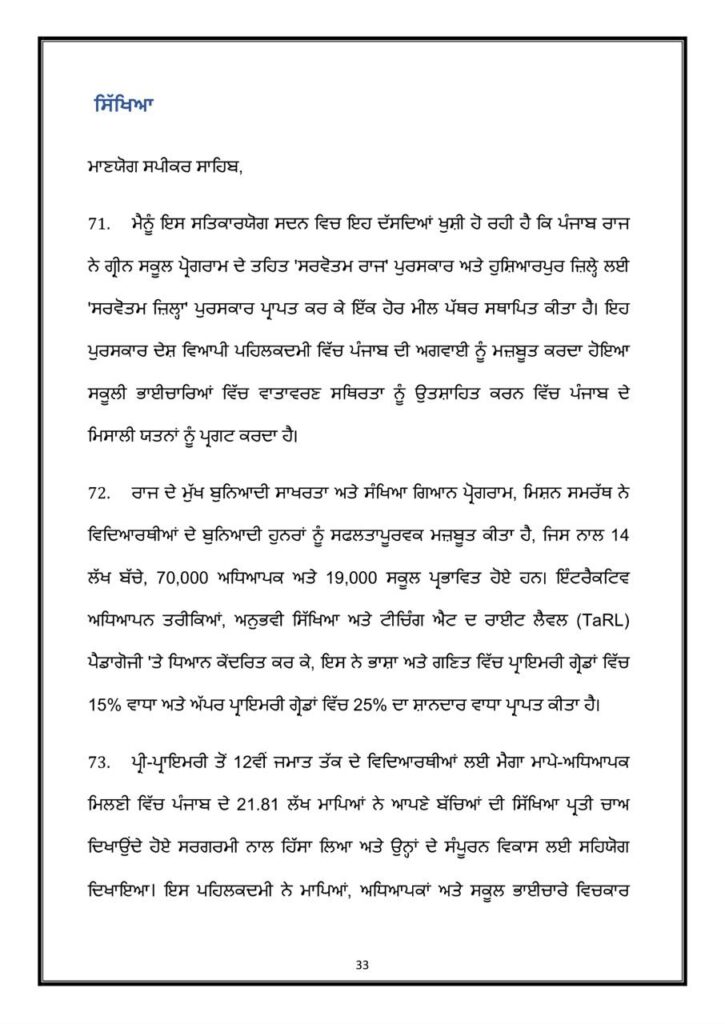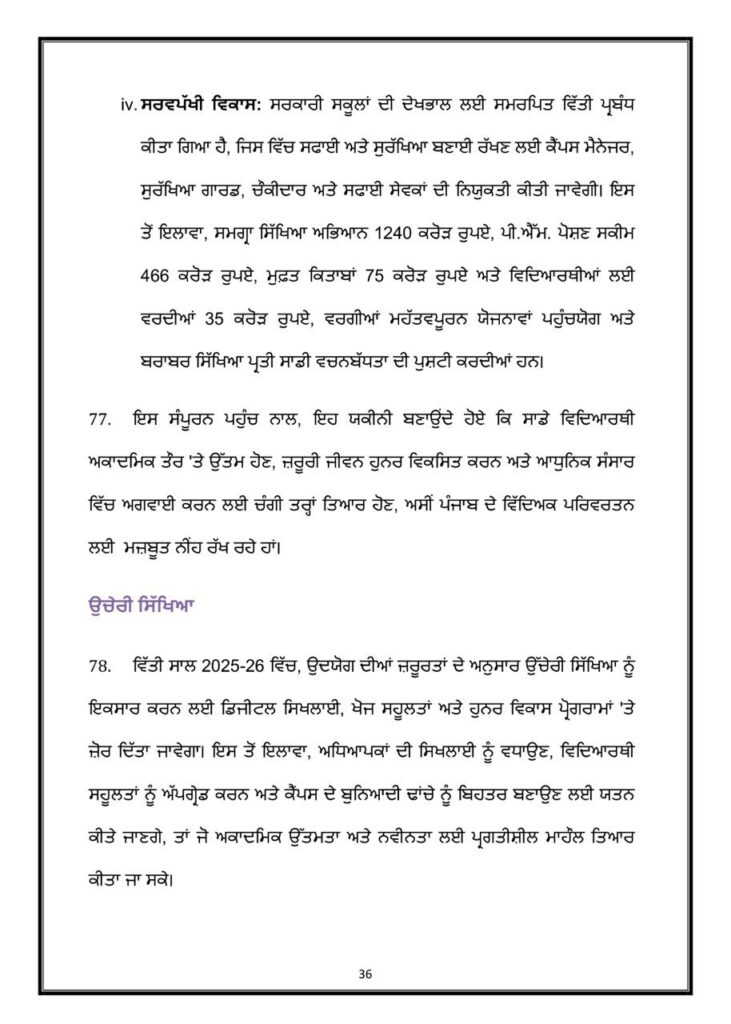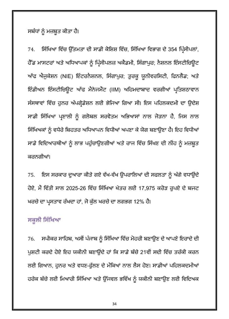 Punjab Budget : ਸਿੱਖਿਆ ਖੇਤਰ ਲਈ 17,975 ਕਰੋੜ ਖਰਚੇ ਜਾਣਗੇ
