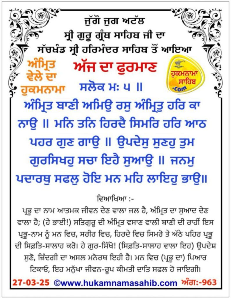 ਸੱਚਖੰਡ ਸ੍ਰੀ ਹਰਿਮੰਦਰ ਸਾਹਿਬ, ਸ੍ਰੀ ਅੰਮ੍ਰਿਤਸਰ,27-03-2025
