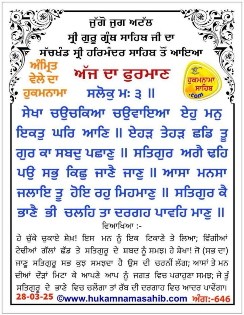 ਸੱਚਖੰਡ ਸ੍ਰੀ ਹਰਿਮੰਦਰ ਸਾਹਿਬ, ਸ੍ਰੀ ਅੰਮ੍ਰਿਤਸਰ, 28-03-2025