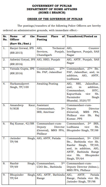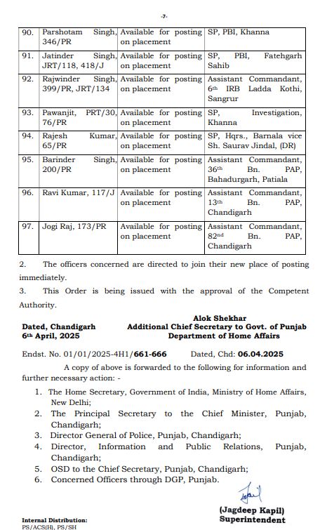 ਪੰਜਾਬ ਸਰਕਾਰ ਵੱਲੋਂ IPS ਅਧਿਕਾਰੀਆਂ ਦੀਆਂ ਬਦਲੀਆਂ Punjab ਅਪ੍ਰੈਲ 6, 2025ਅਪ੍ਰੈਲ 6, 2025Leave a Comment on ਪੰਜਾਬ ਸਰਕਾਰ ਵੱਲੋਂ IPS ਅਧਿਕਾਰੀਆਂ ਦੀਆਂ ਬਦਲੀਆਂ ਚੰਡੀਗੜ੍ਹ, 6 ਅਪ੍ਰੈਲ, ਦੇਸ਼ ਕਲਿੱਕ ਬਿਓਰੋ : ਪੰਜਾਬ ਸਰਕਾਰ ਵੱਲੋਂ ਆਈ ਪੀ ਐਸ ਅਧਿਕਾਰੀਆਂ ਦੀਆਂ ਬਦਲੀਆਂ ਕੀਤੀਆਂ ਗਈਆਂ ਹਨ।