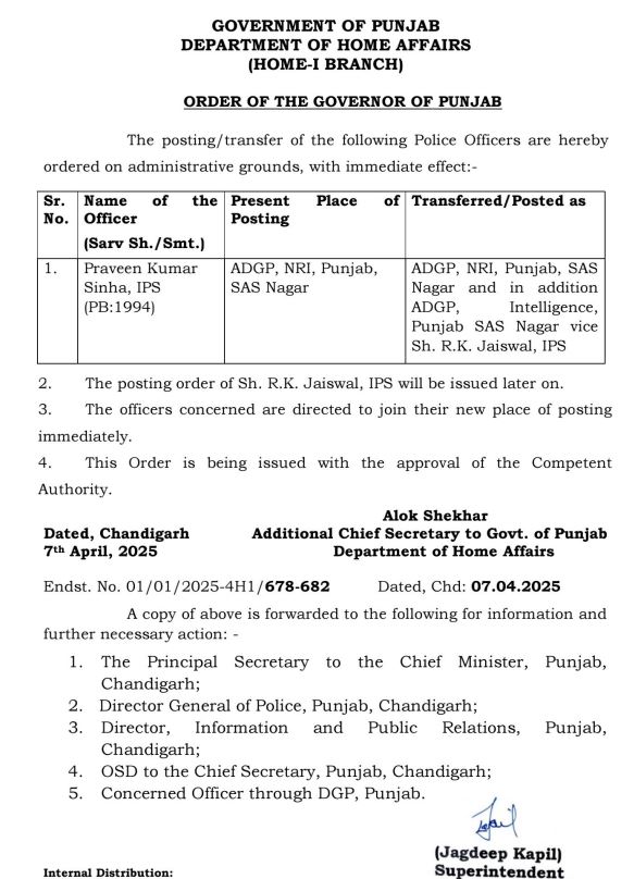 ਪੰਜਾਬ ਸਰਕਾਰ ਵੱਲੋਂ ਸੀਨੀਅਰ IPS ਅਧਿਕਾਰੀ ਦੀ ਬਦਲੀ ਪੰਜਾਬ ਅਪ੍ਰੈਲ 7, 2025ਅਪ੍ਰੈਲ 7, 2025Leave a Comment on ਪੰਜਾਬ ਸਰਕਾਰ ਵੱਲੋਂ ਸੀਨੀਅਰ IPS ਅਧਿਕਾਰੀ ਦੀ ਬਦਲੀ ਚੰਡੀਗੜ੍ਹ, 7 ਅਪ੍ਰੈਲ, ਦੇਸ਼ ਕਲਿੱਕ ਬਿਓਰੋ : ਪੰਜਾਬ ਸਰਕਾਰ ਵੱਲੋਂ ਸੀਨੀਅਰ IPS ਅਧਿਕਾਰੀ ਦੀ ਬਦਲੀ ਕੀਤੀ ਗਈ ਹੈ।