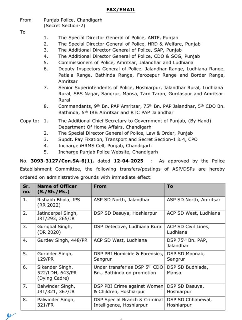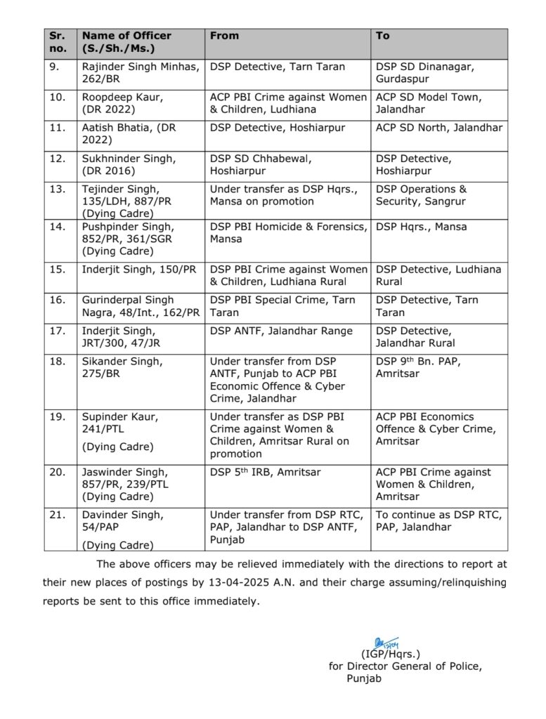 ਪੰਜਾਬ ਸਰਕਾਰ ਵੱਲੋਂ 21 DSP’s ਦੇ ਤਬਾਦਲੇ ਪੰਜਾਬ ਅਪ੍ਰੈਲ 12, 2025ਅਪ੍ਰੈਲ 12, 2025Leave a Comment on ਪੰਜਾਬ ਸਰਕਾਰ ਵੱਲੋਂ 21 DSP’s ਦੇ ਤਬਾਦਲੇ ਚੰਡੀਗੜ੍ਹ: 12 ਅਪ੍ਰੈਲ, ਦੇਸ਼ ਕਲਿੱਕ ਬਿਓਰੋ DSP’s transferred: ਪੰਜਾਬ ਸਰਕਾਰ ਵੱਲੋਂ 1 IPS ਅਤੇ 21 DSP’s ਦੀਆਂ ਬਦਲੀਆਂ ਕੀਤੀਆਂ ਗਈਆਂ ਹਨ।