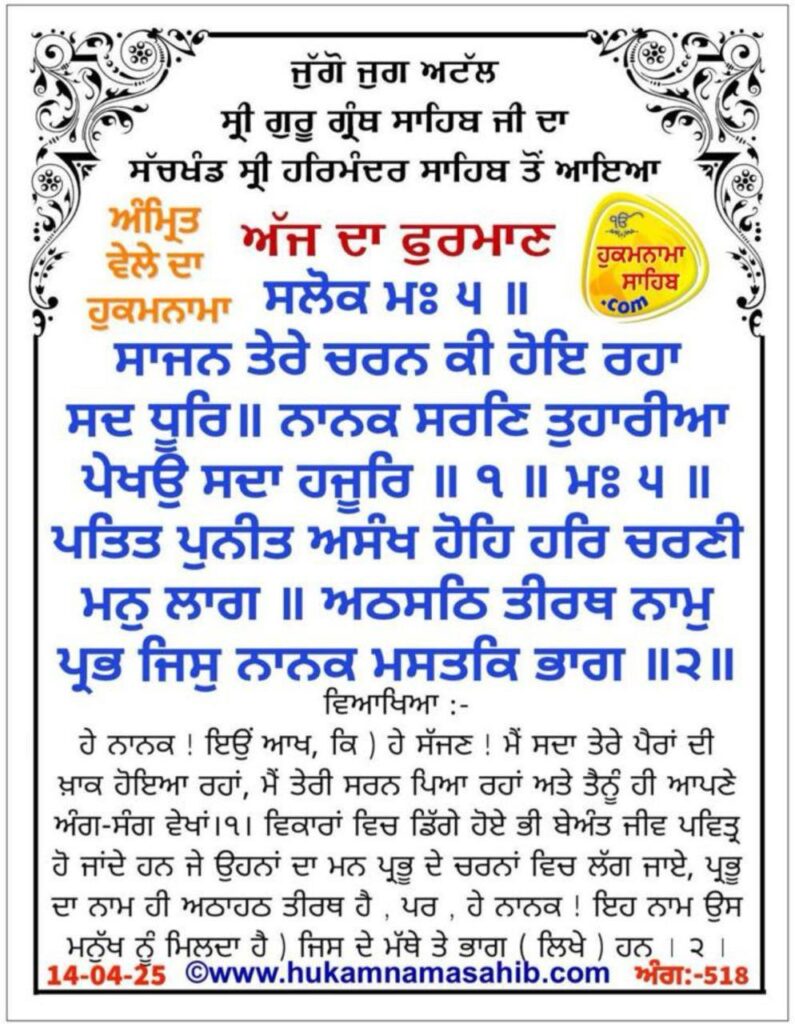 ਸੱਚਖੰਡ ਸ੍ਰੀ ਹਰਿਮੰਦਰ ਸਾਹਿਬ, ਸ੍ਰੀ ਅੰਮ੍ਰਿਤਸਰ, 14-04-2025