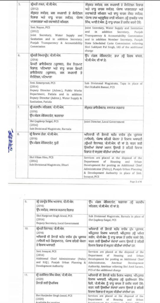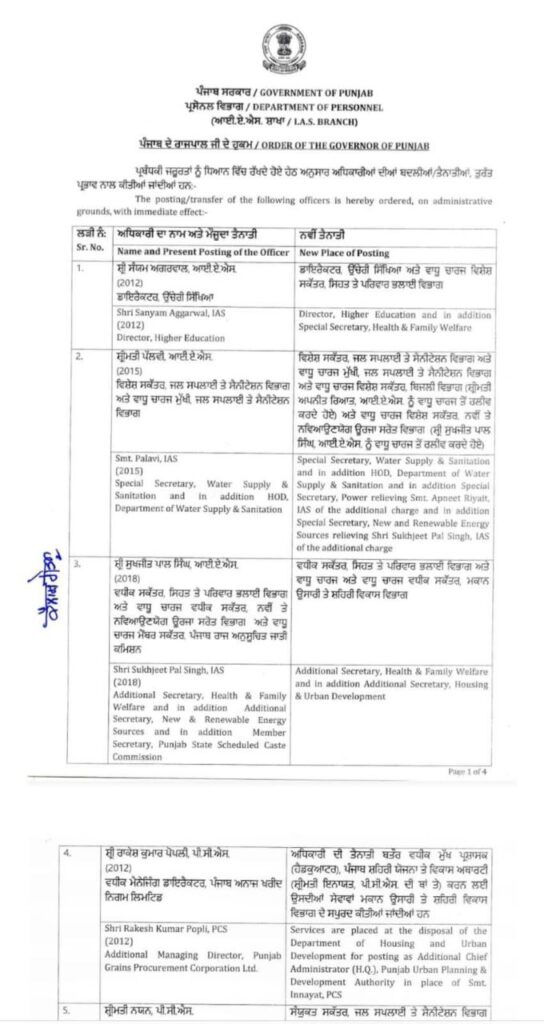 ਪੰਜਾਬ ਸਰਕਾਰ ਵੱਲੋਂ IAS ਅਤੇ PCS ਅਧਿਕਾਰੀਆਂ ਦੀਆਂ ਬਦਲੀਆਂ ਪੰਜਾਬ ਅਪ੍ਰੈਲ 21, 2025ਅਪ੍ਰੈਲ 22, 2025Leave a Comment on ਪੰਜਾਬ ਸਰਕਾਰ ਵੱਲੋਂ IAS ਅਤੇ PCS ਅਧਿਕਾਰੀਆਂ ਦੀਆਂ ਬਦਲੀਆਂ ਚੰਡੀਗੜ੍ਹ, 21 ਅਪ੍ਰੈਲ, ਦੇਸ਼ ਕਲਿੱਕ ਬਿਓਰੋ : ਪੰਜਾਬ ਸਰਕਾਰ ਵੱਲੋਂ IAS ਅਤੇ PCS ਅਧਿਕਾਰੀਆਂ ਦੀਆਂ ਬਦਲੀਆਂ (IAS PCS Transfers) ਕੀਤੀਆਂ ਗਈਆਂ ਹਨ। ਇਹ ਤੁਰੰਤ ਪ੍ਰਭਾਵ ਨਾਲ ਲਾਗੂ ਕਰਦੇ ਹੋਏ ਜੁਆਇਨ ਕਰਨ ਲਈ ਕਿਹਾ ਗਿਆ ਹੈ।