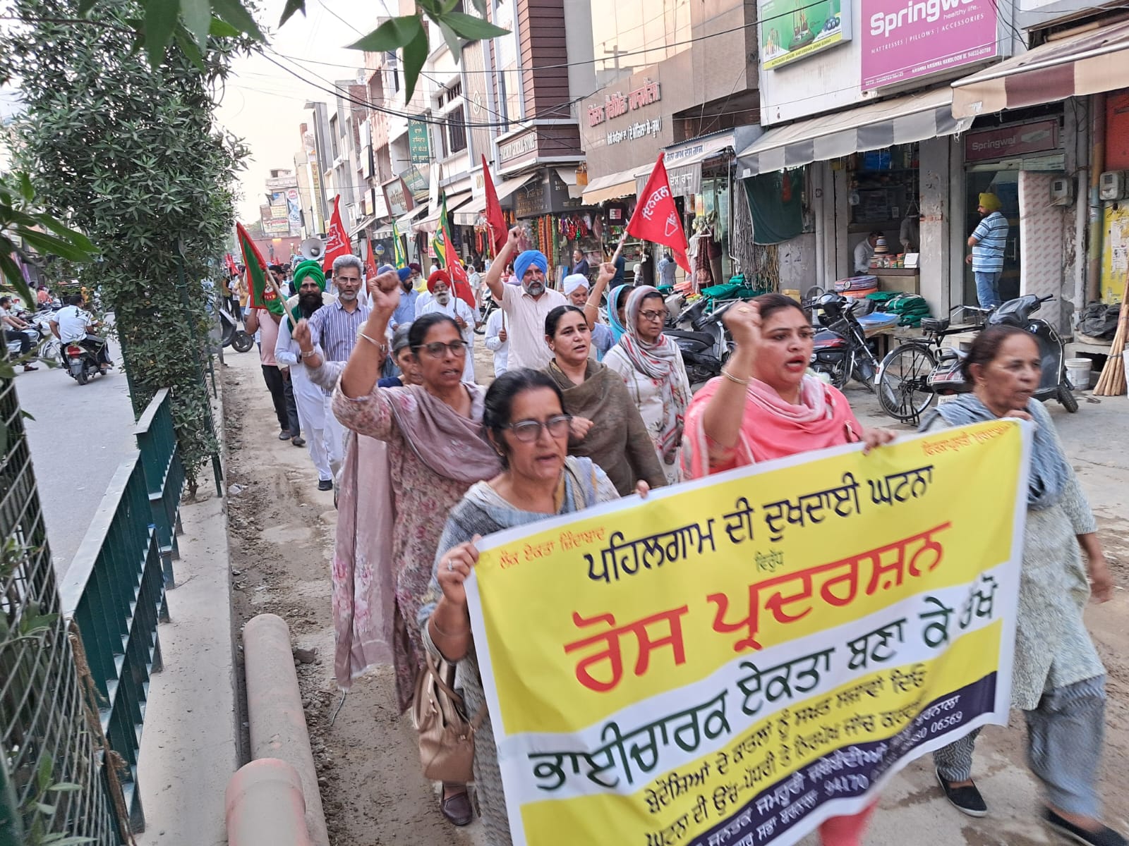 ਰੈਲੀ ਨੂੰ ਡੀਟੀਐੱਫ ਆਗੂ ਗੁਰਮੀਤ ਸੁਖਪੁਰ, ਬੀਕੇਯੂ ਉਗਰਾਹਾਂ ਦੇ ਬਲੌਰ ਸਿੰਘ ਬਦਰਾ, ਪਸਸਫ ਦੇ ਦਰਸ਼ਨ ਚੀਮਾ, ਇਨਕਲਾਬੀ ਕੇਂਦਰ ਦੇ ਖੁਸ਼ਵਿੰਦਰਪਾਲ, ਤਰਕਸ਼ੀਲ ਆਗੂ ਰਾਜਿੰਦਰ ਭਦੌੜ, ਮਨਰੇਗਾ ਮਜ਼ਦੂਰ ਯੂਨੀਅਨ ਦੇ ਜਗਰਾਜ ਰਾਮਾ, ਬੀਕੇਯੂ ਡਕੌਂਦਾ ਦੀ ਆਗੂ ਅਮਰਜੀਤ ਕੌਰ, ਸਾਬਕਾ ਸਿਵਲ ਸਰਜਨ ਡਾਕਟਰ ਜਸਵੀਰ ਔਲਖ ਤੋਂ ਇਲਾਵਾ ਟੀਐੱਸਯੁ, ਜੈ ਕਿਸਾਨ ਅੰਦੋਲਨ, ਮਜ਼ਦੂਰ ਅਧਿਕਾਰ ਮੰਚ ਤੇ ਮੁਸਲਿਮ ਭਾਈਚਾਰੇ ਦੇ ਆਗੂਆਂ ਨੇ ਸੰਬੋਧਨ ਕੀਤਾ। ਆਗੂਆਂ ਨੇ ਕਿਹਾ ਕਿ ਬੇਦੋਸ਼ੇ ਲੋਕਾਂ ਨੂੰ ਕਤਲ ਕਰਨ ਦੀ ਅਣਮਨੁੱਖੀ ਤੇ ਅਤਿ-ਨਿੰਦਣਯੋਗ ਕਾਰਵਾਈ ਲਈ ਜ਼ਿੰਮੇਵਾਰ ਲੋਕਾਂ ਨੂੰ ਸਖਤ ਸਜ਼ਾਵਾਂ ਮਿਲਣੀਆਂ ਚਾਹੀਦੀਆਂ ਹਨ। ਆਗੂਆਂ ਨੇ ਘਟਨਾ ਦੀ ਉਚ ਪੱਧਰੀ ਤੇ ਨਿਰਪੱਖ ਜਾਂਚ ਕਰਵਾਉਣ ਦੀ ਵੀ ਮੰਗ ਕੀਤੀ। ਕਸ਼ਮੀਰ ਦੇ ਲੋਕਾਂ ਨੇ ਜਿਸ ਪ੍ਰਕਾਰ ਪੀੜਤਾਂ ਦੀ ਮਦਦ ਕੀਤੀ ਅਤੇ ਕਸ਼ਮੀਰ ਵ੍ਵਿਚ ਮੁਕੰਮਲ ਬੰਦ ਕਰਕੇ ਇਸ ਘਿਣਾਉਣੀ ਕਾਰਵਾਈ ਦਾ ਵਿਰੋਧ ਕੀਤਾ, ਉਸ ਦੀ ਸ਼ਲਾਘਾ ਕੀਤੀ ਜਾਣੀ ਚਾਹੀਦੀ ਹੈ। ਪਰ ਇਸ ਘਟਨਾ ਤੋਂ ਬਾਅਦ ਦੇਸ਼ ਵਿਚ ਜੋ ਮਾਹੌਲ ਬਣ ਰਿਹਾ ਹੈ, ਉਹ ਬਹੁਤ ਚਿੰਤਾਜਨਕ ਹੈ। ਇਸ ਘਿਣਾਉਣੇ ਕਾਰੇ ਦੇ ਸਾਜਿਸ਼ਘਾੜਿਆਂ ਦੀ ਹੀ ਇਹੀ ਮਨਸ਼ਾ ਹੈ ਕਿ ਫਿਰਕਿਆਂ ਦਰਮਿਆਨ ਵੰਡੀਆਂ ਪਾਈਆਂ ਜਾਣ। ਜੇਕਰ ਅਸੀਂ ਭਾਈਚਾਰਕ ਏਕਤਾ ਨੂੰ ਕਾਇਮ ਨਹੀਂ ਰੱਖ ਸਕਾਂਗੇ ਤਾਂ ਉਨ੍ਹਾਂ ਕਾਲੀਆਂ ਤਾਕਤਾਂ ਦੇ ਕਾਲੇ ਮਨਸੂਬਿਆਂ ਨੂੰ ਹੀ ਅੰਜ਼ਾਮ ਦੇ ਰਹੇ ਹੋਵਾਂਗੇ। ਪਿਛਲੇ ਦਿਨਾਂ ਦੌਰਾਨ ਮੁਲਕ ਦੇ ਕਈ ਹਿੱਸਿਆਂ ਵਿਚ ਜਿਸ ਪ੍ਰਕਾਰ ਕਸ਼ਮੀਰੀ ਵਿਦਿਆਂਰਥੀਆਂ ਨੂੰ ਨਿਸ਼ਾਨਾ ਬਣਾਇਆ ਜਾ ਰਿਹਾ ਹੈ, ਕਸ਼ਮੀਰੀ ਔਰਤਾਂ ਤੇ ਲੜਕੀਆਂ ਦੀ ਬੇਹੁਰਮਤੀ ਕੀਤੀ ਗਈ ਹੈ, ਉਸ ਦੀ ਹਰ ਇਨਸਾਫਪਸੰਦ ਨਾਗਰਿਕ ਨੂੰ ਚਿੰਤਾ ਹੋਣੀ ਚਾਹੀਦੀ ਹੈ।