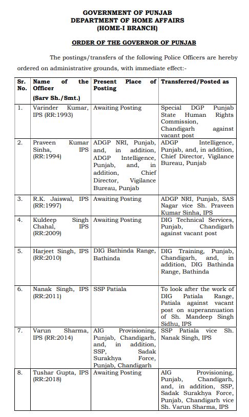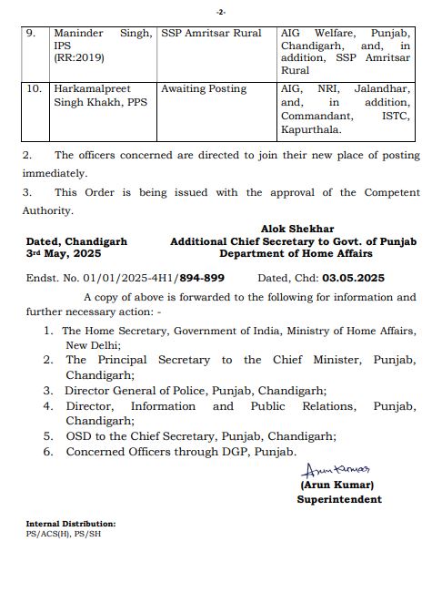 ਪੰਜਾਬ ਸਰਕਾਰ ਵੱਲੋਂ IPS ਤੇ PPS ਅਧਿਕਾਰੀਆਂ ਦੀਆਂ ਬਦਲੀਆਂ ਪੰਜਾਬ ਮਈ 3, 2025ਮਈ 3, 2025Leave a Comment on ਪੰਜਾਬ ਸਰਕਾਰ ਵੱਲੋਂ IPS ਤੇ PPS ਅਧਿਕਾਰੀਆਂ ਦੀਆਂ ਬਦਲੀਆਂ ਚੰਡੀਗੜ੍ਹ, 3 ਮਈ, ਦੇਸ਼ ਕਲਿੱਕ ਬਿਓਰੋ : ਪੰਜਾਬ ਸਰਕਾਰ ਵੱਲੋਂ ਆਈਪੀਐਸ ਅਤੇ ਪੀਪੀਐਸ ਅਧਿਕਾਰੀਆਂ ਦੀਆਂ ਬਦਲੀਆਂ ਕੀਤੀਆਂ ਗਈਆਂ ਹਨ।