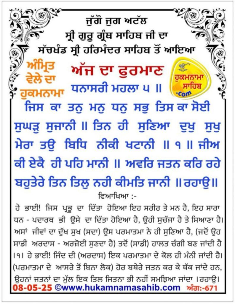 Thursday, 26th Vaisaakh (Samvat 557 Nanakshahi)