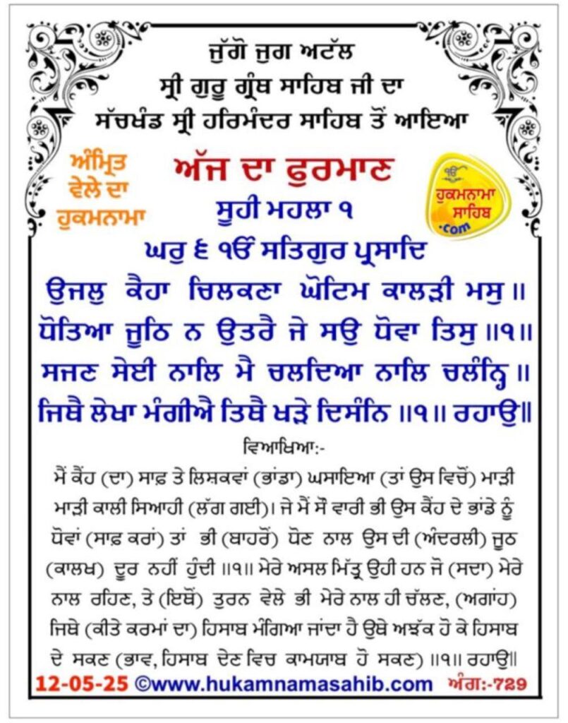 ਸੱਚਖੰਡ ਸ੍ਰੀ ਹਰਿਮੰਦਰ ਸਾਹਿਬ, ਸ੍ਰੀ ਅੰਮ੍ਰਿਤਸਰ, 12-05-2025