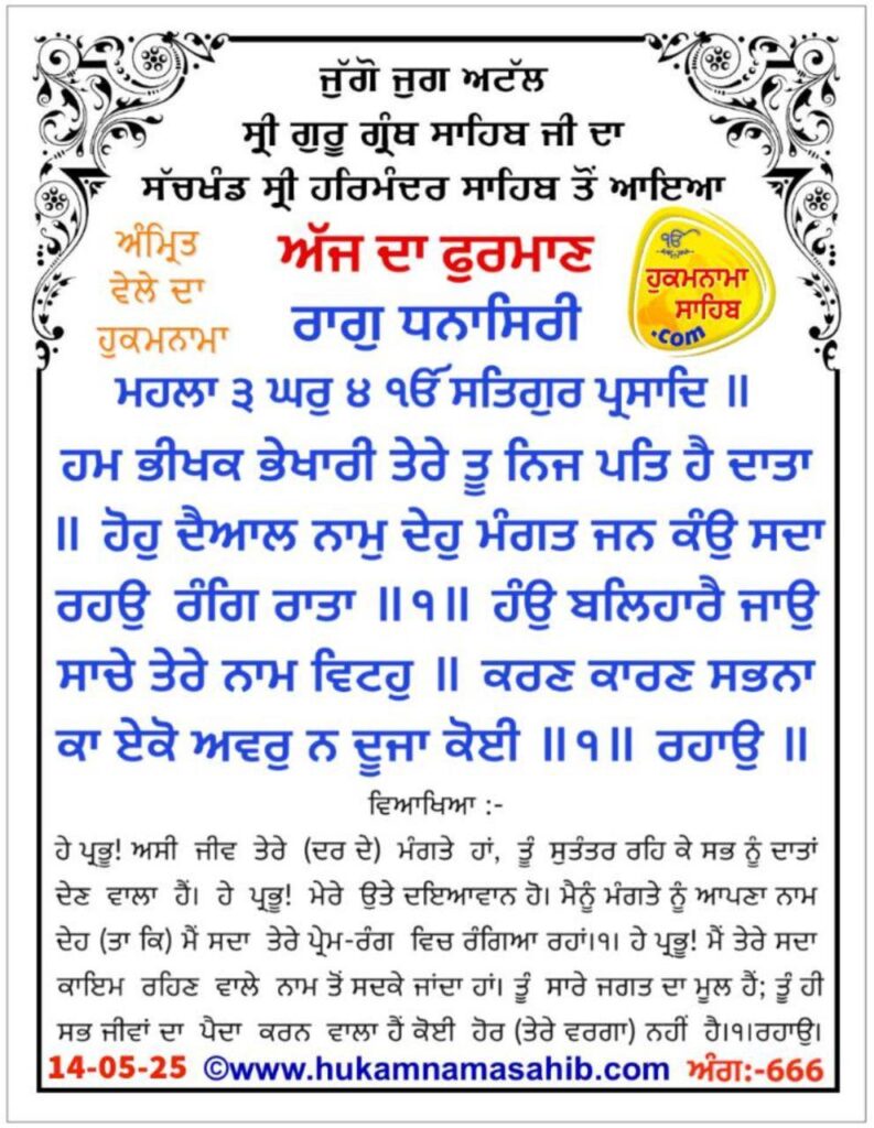 ਸੱਚਖੰਡ ਸ੍ਰੀ ਹਰਿਮੰਦਰ ਸਾਹਿਬ, ਸ੍ਰੀ ਅੰਮ੍ਰਿਤਸਰ, 14-05-2025