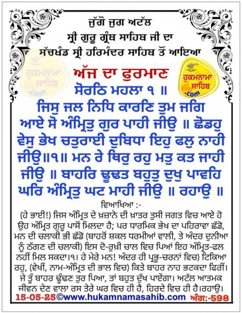 ਸੱਚਖੰਡ ਸ੍ਰੀ ਹਰਿਮੰਦਰ ਸਾਹਿਬ, ਸ੍ਰੀ ਅੰਮ੍ਰਿਤਸਰ, 15-05-2025