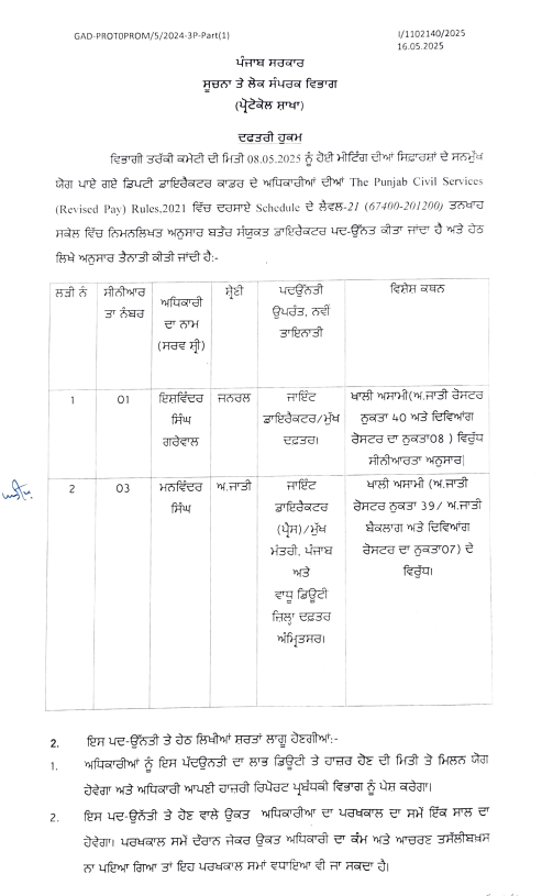 ਇਸ਼ਵਿੰਦਰ ਸਿੰਘ ਗਰੇਵਾਲ ਤੇ ਮਨਵਿੰਦਰ ਸਿੰਘ ਲੋਕ ਸੰਪਰਕ ਵਿਭਾਗ ਦੇ ਜੁਆਇੰਟ ਡਾਇਰੈਕਟਰ ਬਣੇ ਚੰਡੀਗੜ੍ਹ ਮਈ 16, 2025ਮਈ 16, 2025Leave a Comment on ਇਸ਼ਵਿੰਦਰ ਸਿੰਘ ਗਰੇਵਾਲ ਤੇ ਮਨਵਿੰਦਰ ਸਿੰਘ ਲੋਕ ਸੰਪਰਕ ਵਿਭਾਗ ਦੇ ਜੁਆਇੰਟ ਡਾਇਰੈਕਟਰ ਬਣੇ ਚੰਡੀਗੜ੍ਹ: 16 ਮਈ, ਦੇਸ਼ ਕਲਿੱਕ ਬਿਓਰੋਸੂਚਨਾ ਤੇ ਲੋਕ ਸੰਪਰਕ ਵਿਭਾਗ ਪੰਜਾਬ ਨੇ ਵਿਭਾਗ ਦੇ ਦੋ ਡਿਪਟੀ ਡਾਇਰੈਕਟਰਾਂ ਨੂੰ ਤਰੱਕੀ ਦੇ ਕੇ ਜੁਆਇੰਟ ਡਾਇਰੈਕਟਰ ਬਣਾਇਆ ਹੈ। ਜਿਨ੍ਹਾਂ ਵਿੱਚ ਇਸ਼ਵਿੰਦਰ ਸਿੰਘ ਗਰੇਵਾਲ ਤੇ ਮਨਵਿੰਦਰ ਸਿੰਘ ਸ਼ਾਮਲ ਹਨ।