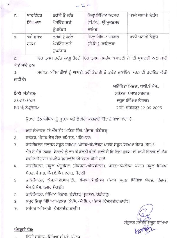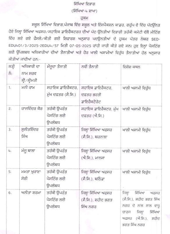 ਪਦ ਉੱਨਤ ਹੋਏ ਜ਼ਿਲ੍ਹਾ ਸਿੱਖਿਆ ਅਫ਼ਸਰਾਂ ਦੀਆਂ ਕੀਤੀਆਂ ਤੈਨਾਤੀਆਂ ਪੰਜਾਬ ਮਈ 22, 2025ਮਈ 22, 2025Leave a Comment on ਪਦ ਉੱਨਤ ਹੋਏ ਜ਼ਿਲ੍ਹਾ ਸਿੱਖਿਆ ਅਫ਼ਸਰਾਂ ਦੀਆਂ ਕੀਤੀਆਂ ਤੈਨਾਤੀਆਂ ਚੰਡੀਗੜ੍ਹ, 22 ਮਈ, ਦੇਸ਼ ਕਲਿੱਕ ਬਿਓਰੋ : ਸਿੱਖਿਆ ਵਿਭਾਗ ਵੱਲੋਂ ਪਦ ਉੱਨਤ ਹੋਏ ਜ਼ਿਲ੍ਹਾ ਸਿੱਖਿਆ ਅਫਸਰਾਂ ਦੀਆਂ ਤੈਨਾਤੀਆਂ ਕੀਤੀਆਂ ਗਈਆਂ ਹਨ।