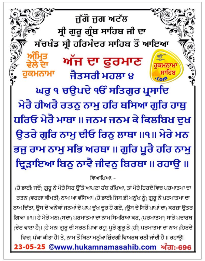 ਸੱਚਖੰਡ ਸ੍ਰੀ ਹਰਿਮੰਦਰ ਸਾਹਿਬ, ਸ੍ਰੀ ਅੰਮ੍ਰਿਤਸਰ,23-05-2025