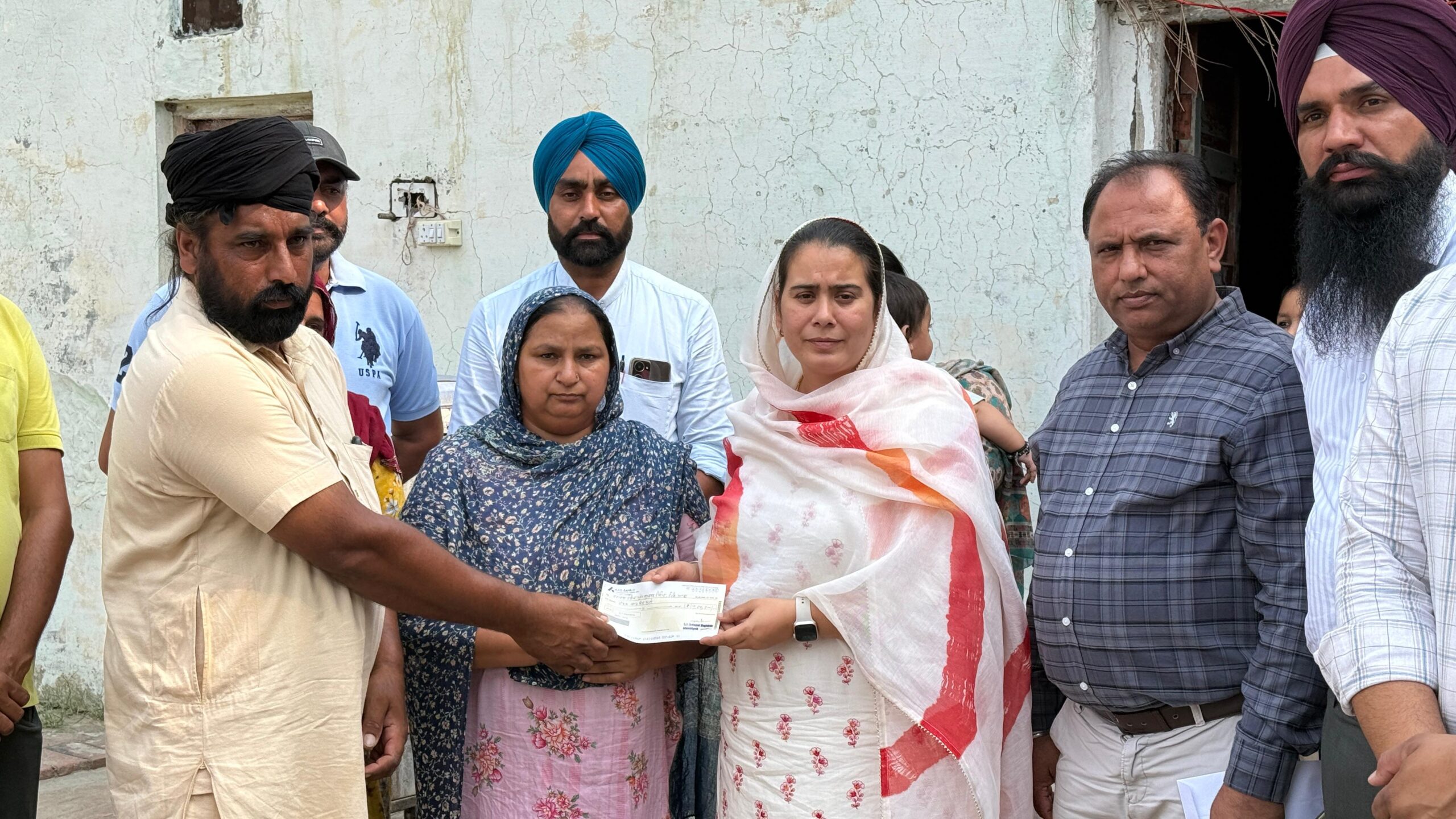 ਸੰਗਰੂਰ, 31 ਮਈ, 2025: ਤੇਜ਼ ਹਨੇਰੀ ਕਾਰਨ ਹਲਕੇ ਦੇ ਪਿੰਡ ਮਾਝਾ ਵਿਖੇ ਕਿਸਾਨ ਗੁਰਚਰਨ ਸਿੰਘ ਦਾ ਪੌਲਟਰੀ ਫਾਰਮ ਡਿੱਗ ਗਿਆ ਸੀ ਅਤੇ ਉਸ ਦੇ ਨਿੱਚੇ ਆਉਣ ਕਾਰਨ ਗੁਰਚਰਨ ਸਿੰਘ ਦੀ ਮੌਤ ਹੋ ਗਈ ਸੀ। ਆਪਣਾ ਫਰਜ਼ ਨਿਭਾਉਦੇ ਹੋਏ ਮੁੱਖ ਮੰਤਰੀ ਸ. ਭਗਵੰਤ ਸਿੰਘ ਮਾਨ ਦੇ ਹੁਕਮਾਂ ਅਨੁਸਾਰ ਪਰਿਵਾਰ ਨੂੰ ਚਾਰ ਲੱਖ ਰੁਪਏ ਦੀ ਸਹਾਇਤਾ ਰਾਸ਼ੀ (financial assistance) ਦਾ ਚੈੱਕ ਹਲਕਾ ਵਿਧਾਇਕ ਸ਼੍ਰੀਮਤੀ ਨਰਿੰਦਰ ਕੌਰ ਭਰਾਜ ਵੱਲੋਂ ਭੇਟ ਕੀਤਾ ਗਿਆ।