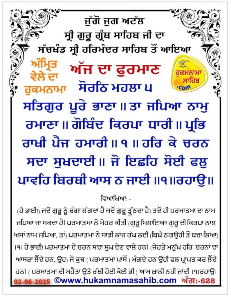 ਸੱਚਖੰਡ ਸ੍ਰੀ ਹਰਿਮੰਦਰ ਸਾਹਿਬ, ਸ੍ਰੀ ਅੰਮ੍ਰਿਤਸਰ, 02-06-2025