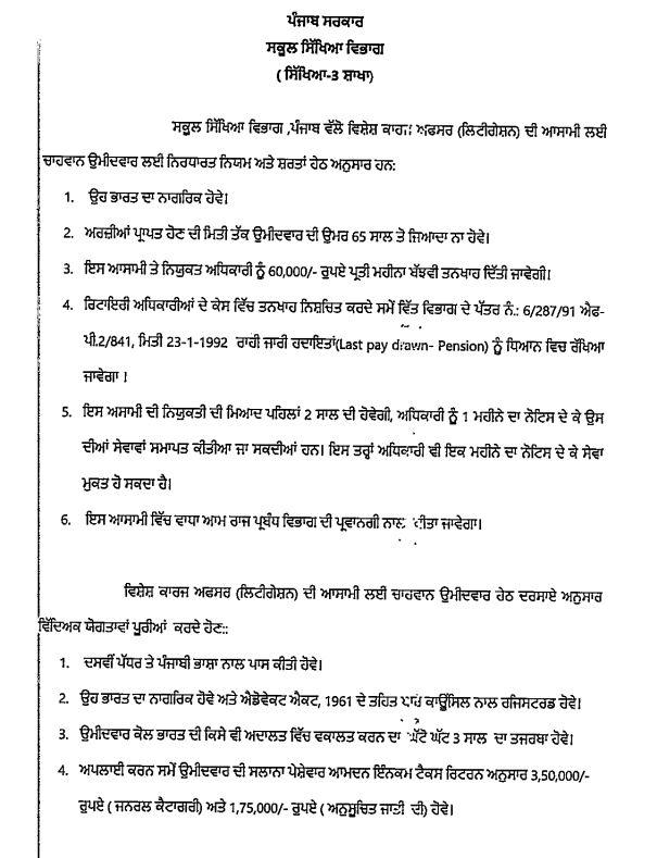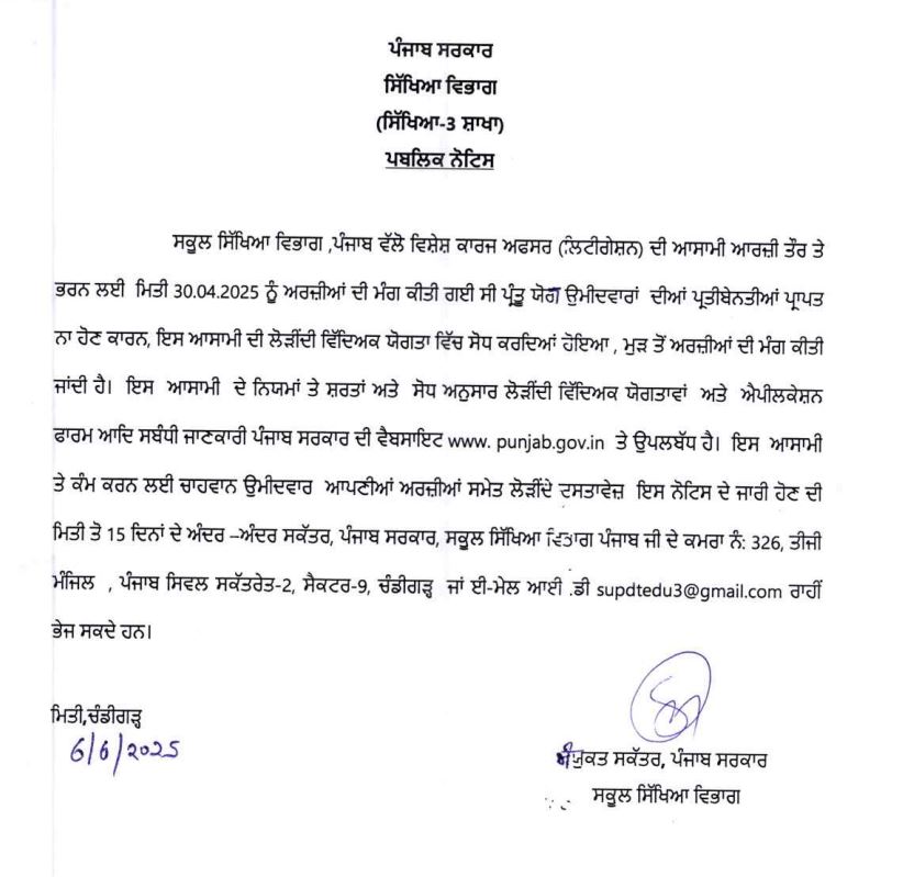 ਸਕੂਲ ਸਿੱਖਿਆ ਵਿਭਾਗ ’ਚ ਇਨ੍ਹਾਂ ਅਸਾਮੀਆਂ ਲਈ ਮੰਗੀਆਂ ਅਰਜ਼ੀਆਂ ਪੰਜਾਬ ਜੂਨ 10, 2025ਜੂਨ 10, 2025Leave a Comment on ਸਕੂਲ ਸਿੱਖਿਆ ਵਿਭਾਗ ’ਚ ਇਨ੍ਹਾਂ ਅਸਾਮੀਆਂ ਲਈ ਮੰਗੀਆਂ ਅਰਜ਼ੀਆਂ ਚੰਡੀਗੜ੍ਹ, 10 ਜੂਨ, ਦੇਸ਼ ਕਲਿੱਕ ਬਿਓਰੋ : ਪੰਜਾਬ ਸਰਕਾਰ ਵੱਲੋਂ ਸਕੂਲ ਸਿੱਖਿਆ ਵਿਭਾਗ ਵਿੱਚ ਵਿਸ਼ੇਸ਼ ਕਾਰਜ ਅਫਸਰ (ਲਿਟੀਗੇਸ਼ਨ) ਦੀਆਂ ਅਸਾਮੀਆਂ ਲਈ ਆਰਜ਼ੀ ਤੌਰ ਉਤੇ ਭਰਨ ਲਈ ਯੋਗ ਉਮੀਦਵਾਰਾਂ ਤੋਂ ਅਰਜ਼ੀਆਂ ਦੀ ਮੰਗ ਕੀਤੀ ਗਈ ਹੈ।