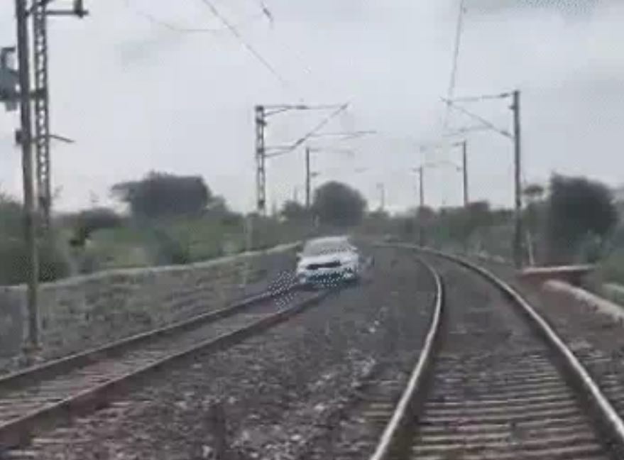 ਤੇਲੰਗਾਨਾ ਦੇ ਰੰਗਾ ਰੈਡੀ ਜ਼ਿਲ੍ਹੇ ਵਿੱਚ, ਸ਼ੰਕਰਪੱਲੀ ਨੇੜੇ ਵਾਪਰੀ ਇਸ ਘਟਨਾ ਦੇ ਕੁਝ ਵੀਡੀਓ ਸੋਸ਼ਲ ਮੀਡੀਆ ‘ਤੇ ਵਾਇਰਲ ਹੋ ਰਹੇ ਹਨ। 13 ਸਕਿੰਟ ਦੇ ਵੀਡੀਓ ਵਿੱਚ ਦੇਖਿਆ ਜਾ ਸਕਦਾ ਹੈ ਕਿ ਔਰਤ ਰੇਲਵੇ ਟਰੈਕ ‘ਤੇ ਕੀਆ ਸੋਨੇਟ ਕਾਰ ਚਲਾ ਰਹੀ ਹੈ।
