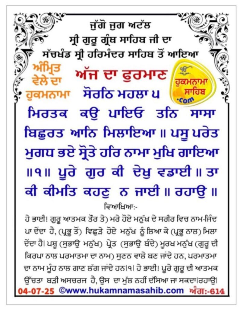 Friday, 20th Assaar (Samvat 557 Nanakshahi)