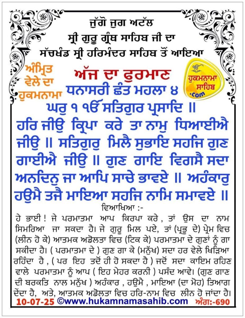 ਸੱਚਖੰਡ ਸ੍ਰੀ ਹਰਿਮੰਦਰ ਸਾਹਿਬ, ਸ੍ਰੀ ਅੰਮ੍ਰਿਤਸਰ, 10-07-2025