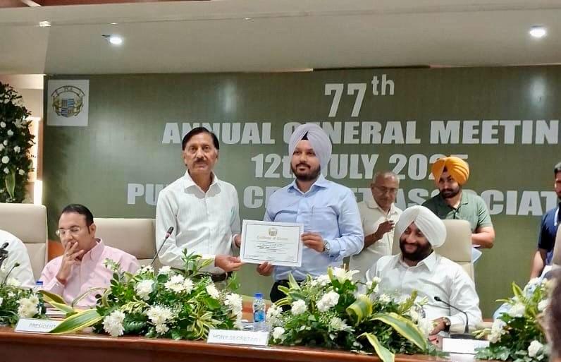 ਪੰਜਾਬ ਕ੍ਰਿਕਟ ਐਸੋਸੀਏਸ਼ਨ ਦੀ ਮੋਹਾਲੀ ਵਿਖੇ ਹੋਈ 77ਵੀਂ ਸਲਾਨਾ ਜਨਰਲ ਮੀਟਿੰਗ ਵਿੱਚ ਅਮਰਿੰਦਰ ਵੀਰ ਸਿੰਘ ਬਰਸਟ ਨੂੰ ਏਪੈਕਸ ਕਾਊਂਸਲ ਆਫ ਪੰਜਾਬ ਕ੍ਰਿਕਟ ਐਸੋਸੀਏਸ਼ਨ ਦਾ ਮੈਂਬਰ ਚੁਣਿਆ ਗਿਆ ਹੈ। ਜਿਸਦੇ ਲਈ ਅਮਰਿੰਦਰ ਵੀਰ ਸਿੰਘ ਬਰਸਟ ਵੱਲੋਂ ਪੰਜਾਬ ਕ੍ਰਿਕਟ ਐਸੋਸੀਏਸ਼ਨ ਦੇ ਸਮੂੰਹ ਮੈਂਬਰਾਂ ਦਾ ਧੰਨਵਾਦ ਕੀਤਾ ਗਿਆ ਹੈ। ਇਸ ਦੌਰਾਨ ਅਮਰਿੰਦਰ ਵੀਰ ਸਿੰਘ ਬਰਸਟ ਨੂੰ ਸਰਟੀਫਿਕੇਟ ਦੇ ਕੇ ਸਨਮਾਨਤ ਕੀਤਾ ਗਿਆ।