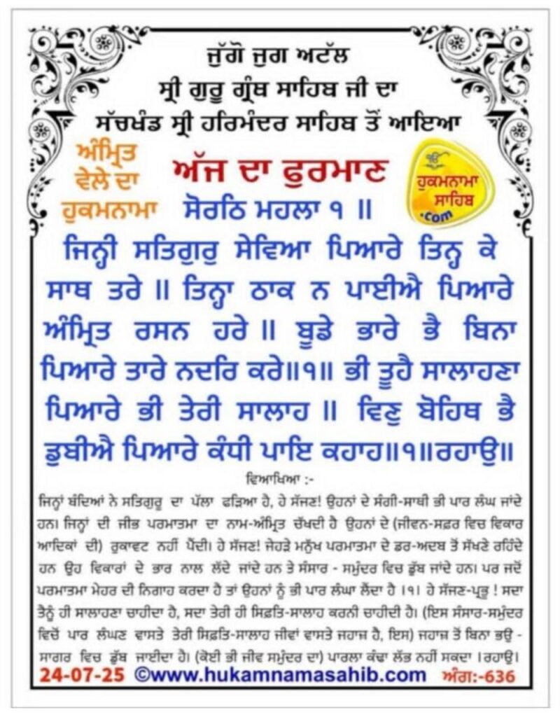 ਸੱਚਖੰਡ ਸ੍ਰੀ ਹਰਿਮੰਦਰ ਸਾਹਿਬ, ਸ੍ਰੀ ਅੰਮ੍ਰਿਤਸਰ, 24-07-2025